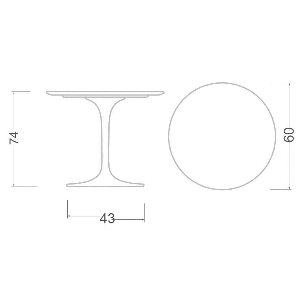 - Diametro piana del tavolo 60 x H 41 cm;