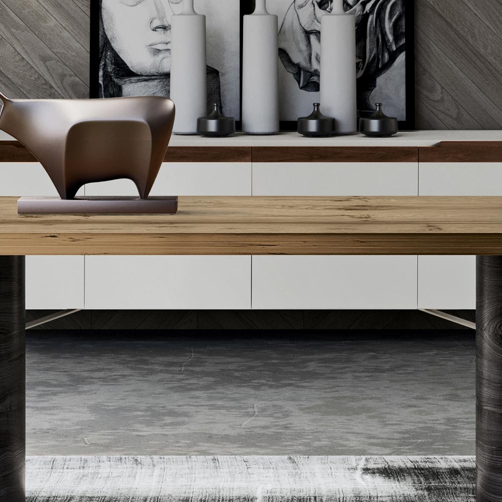Tavolo fisso con piano e gambe in legno Made in Italy