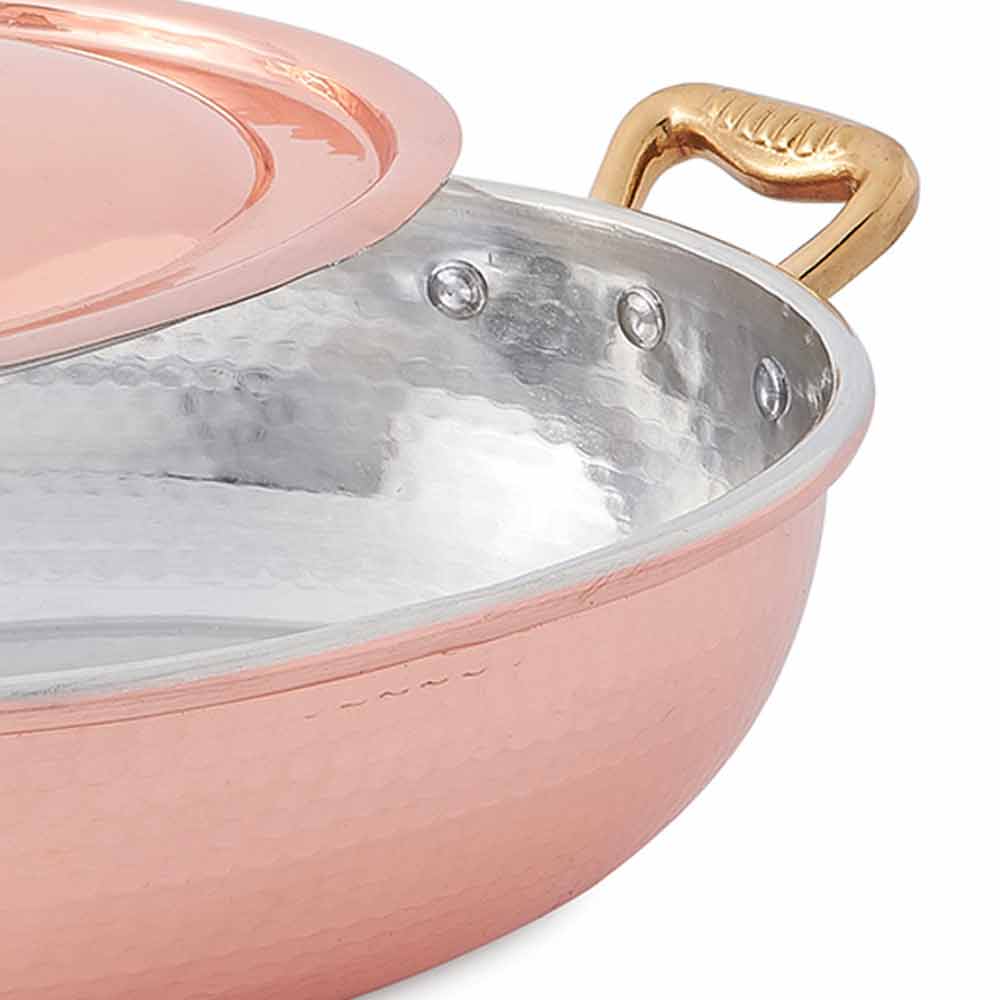 martellato a mano con coperchio e manici, esprime l'assoluta maestria della lavorazione artigianale secondo la