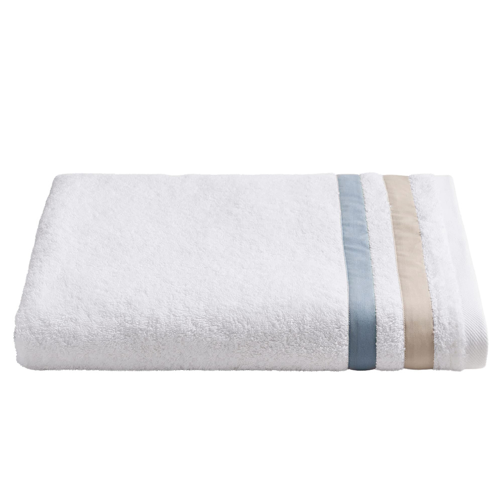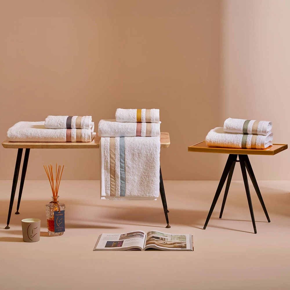 doppia balza in percalle di puro cotone 200 t.c. non solo aggiunge un tocco di eleganza al design, ma anche una delicata sensazione di comfort sulla pelle. Ideale per chi non vuole rinunciare alla qualità e allo stile, questo telo offre un'esperienza superiore di morbidezza e assorbenza.