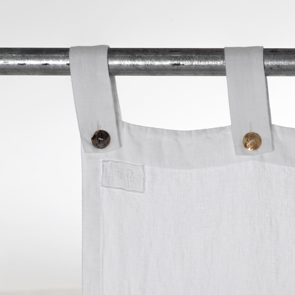 Tenda bianca in lino pesante con allacciatura a bottoni dal design elegante, lusso made in Italy.
