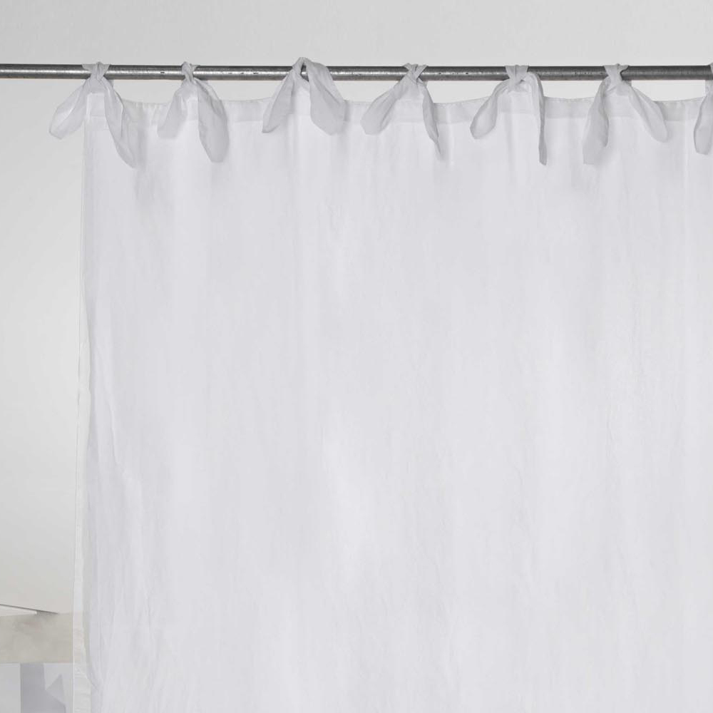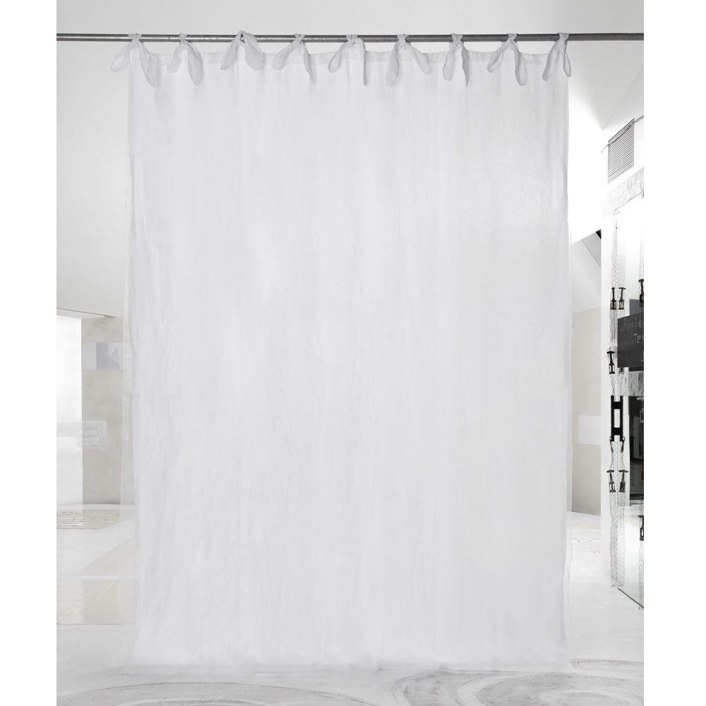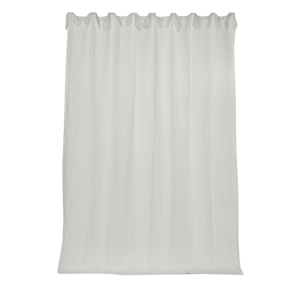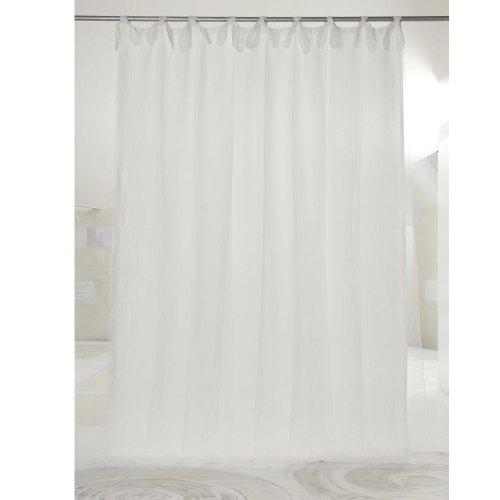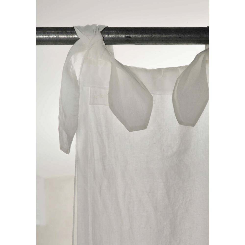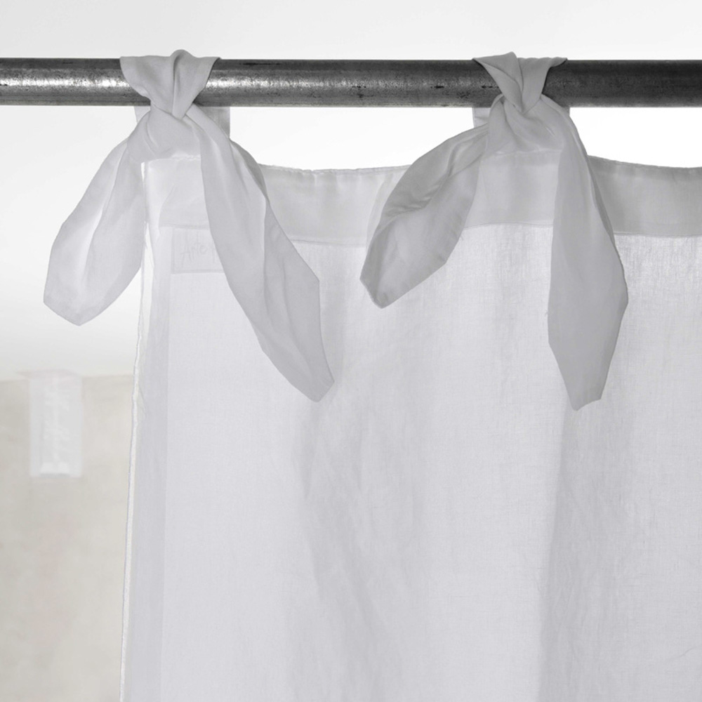 Tenda in lino leggero e organza, allacciatura con laccetti di qualità artigianale, lusso made in Italy.