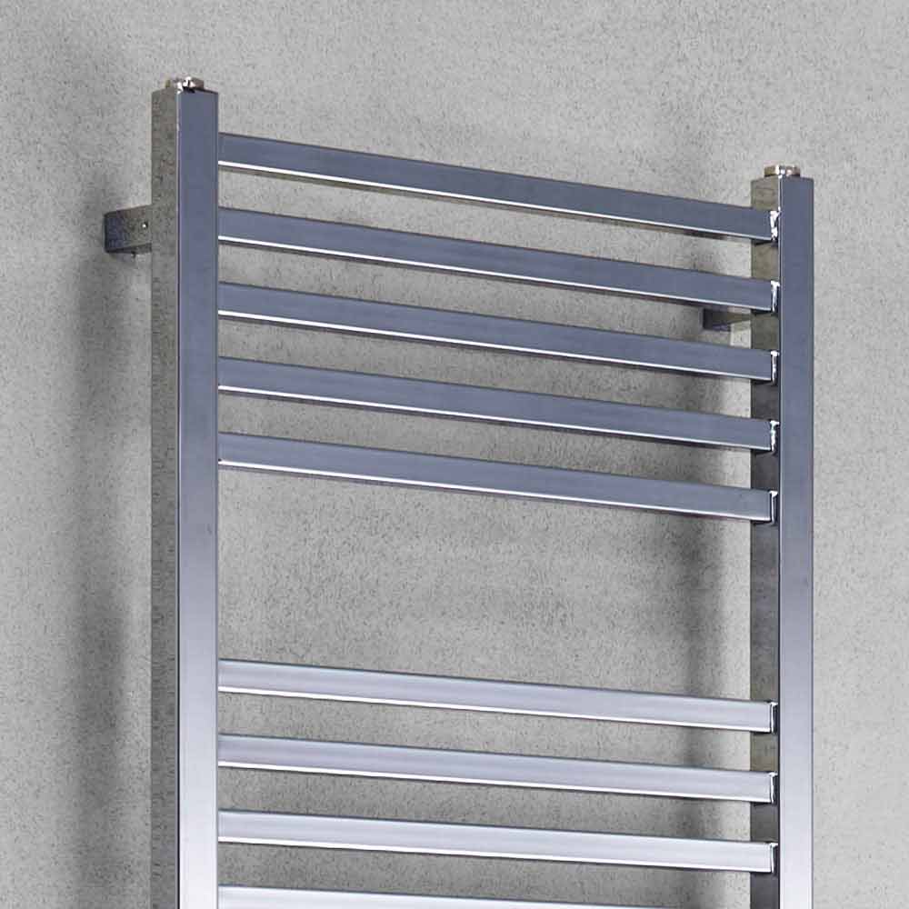 Radiatore scaldasalviette idraulico design cromato squadrato in acciaio, made in Italy.