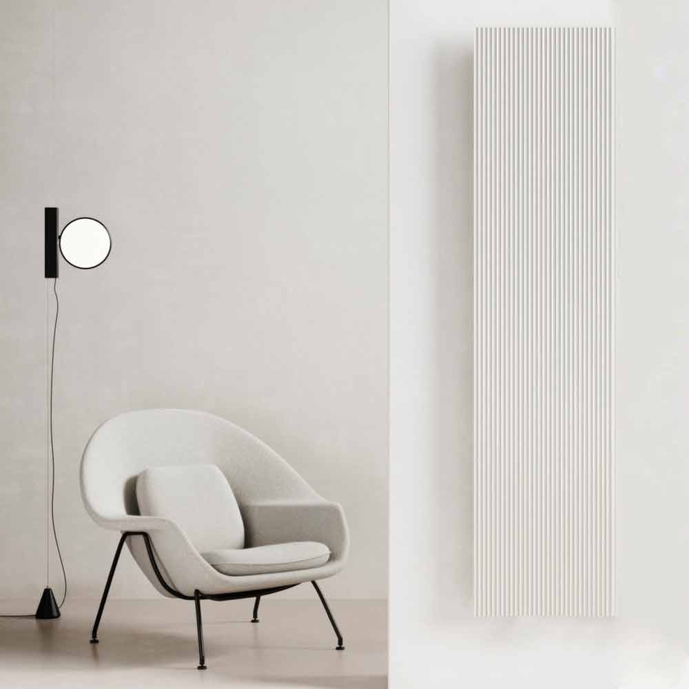 radiatore elettrico presenta un design moderno in cui la vera protagonista è l'architettura, caratterizzata da righe dal ritmo alternato che creano giochi di luce e dialoghi con lo spazio circostante.