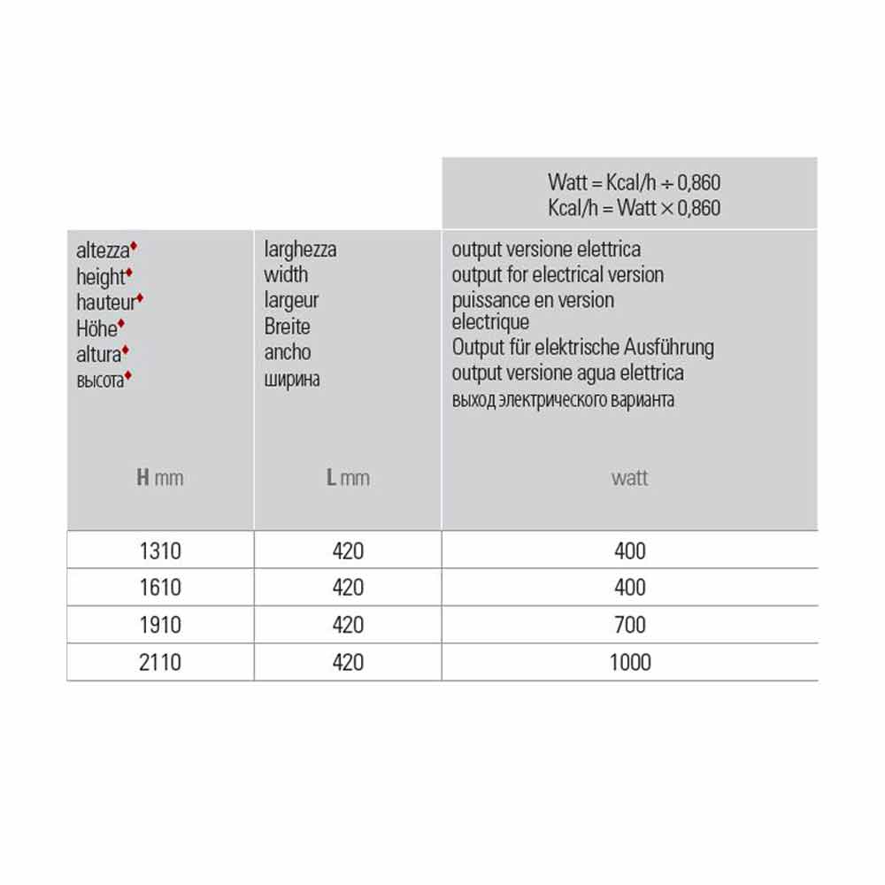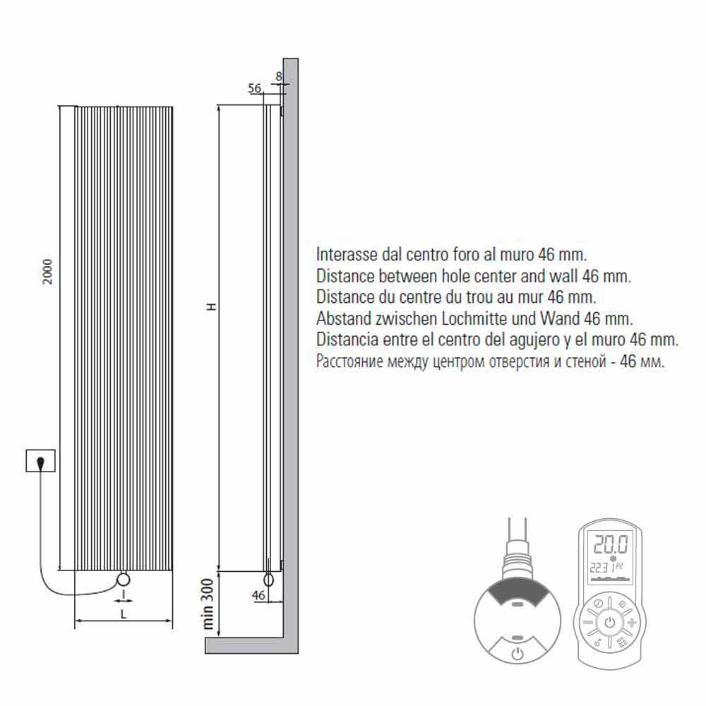 All'altezza va aggiunto il termostato di 110 mm. Alimentazione monofase 230 volt. Disponibile in
