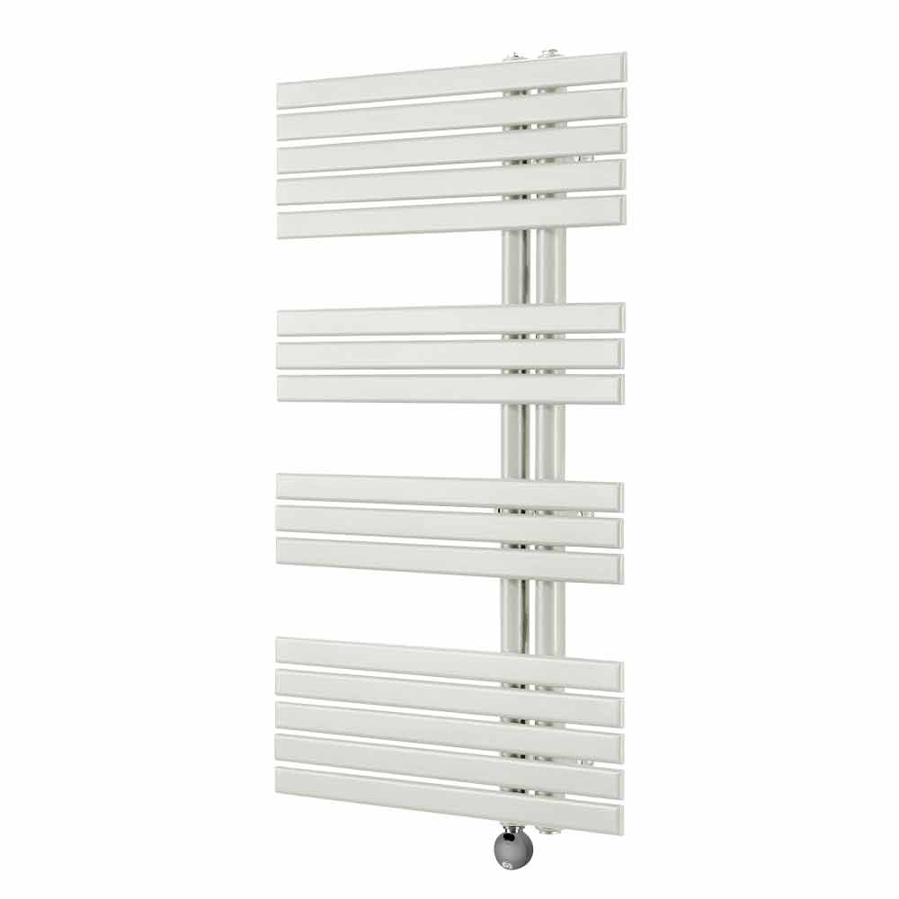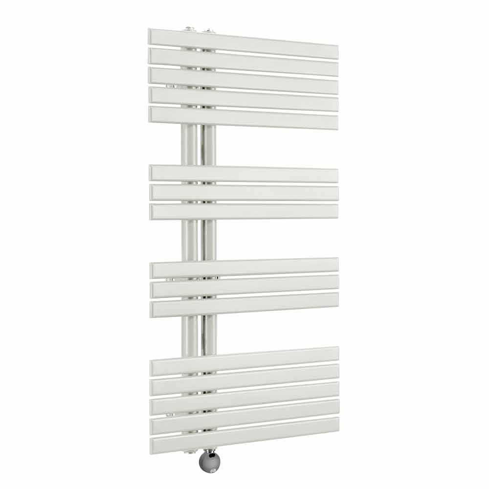 Questo radiatore scaldasalviette elettrico presenta un design cromato realizzato con tubi verticali del diametro di 35 mm e doghe piatte orizzontali da 35 mm. La sua forma moderna e particolare lo rende ideale per arredare i bagni più recenti donando un tocco di originalità.
