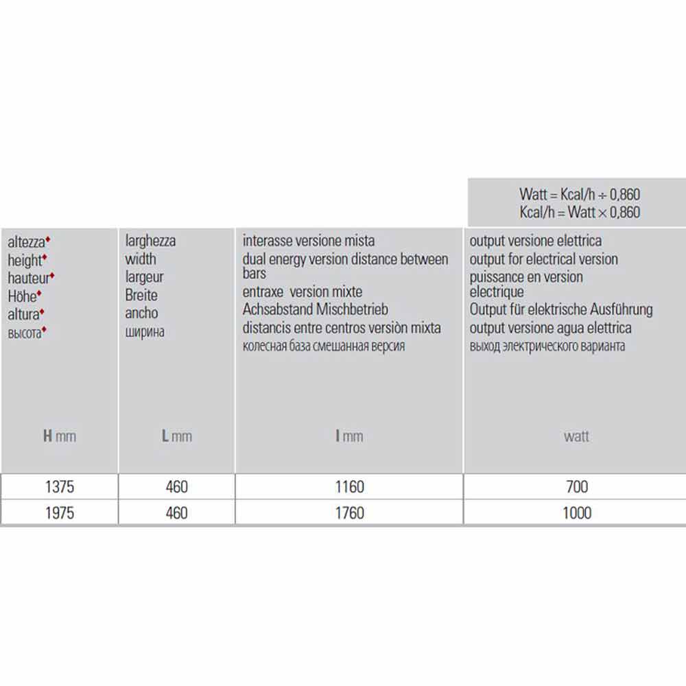 All'altezza va aggiunto il termostato di 110 mm. Alimentazione monofase 230 volt. Disponibile in