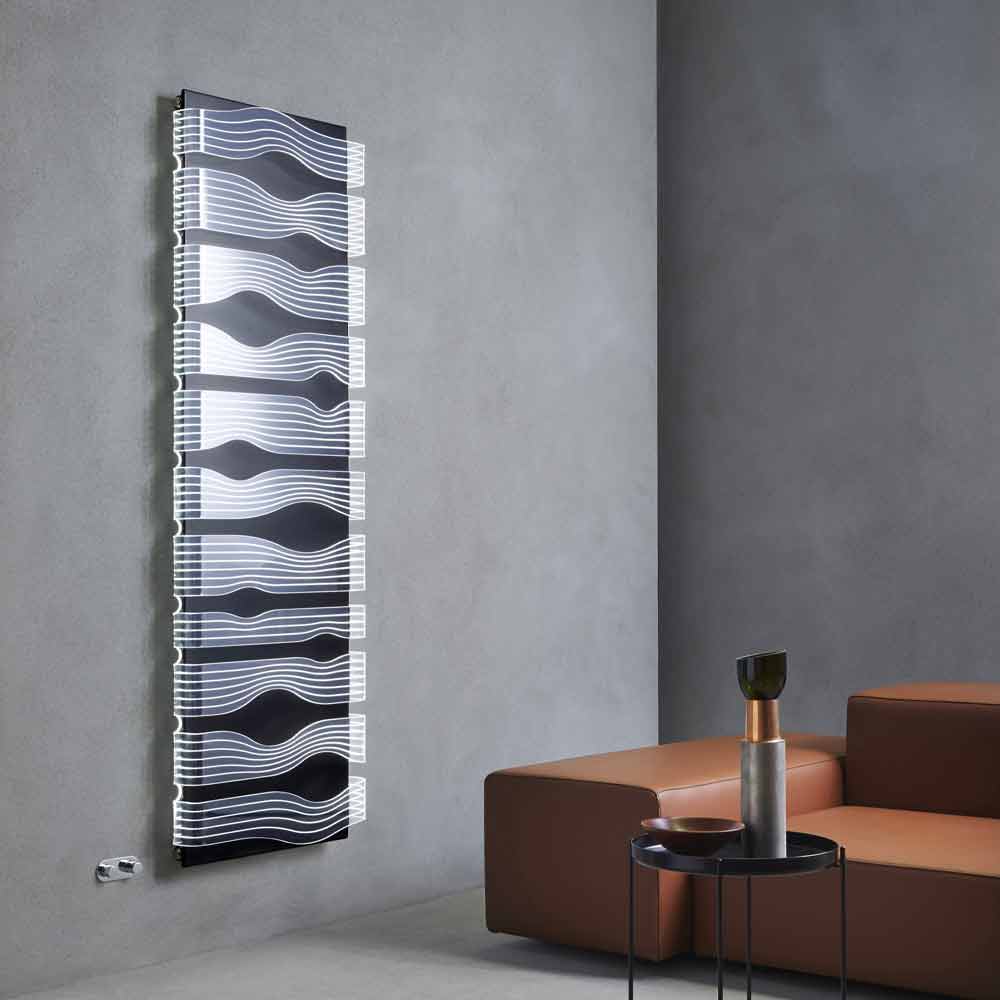 termoarredo in acciaio al carbonio e metacrilato con luce led adatto agli ambienti contemporanei, realizzato