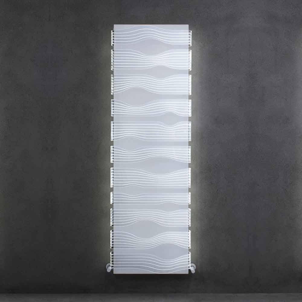 Termoarredo idraulico moderno di design verticale con luci LED, alta qualità made in Italy.