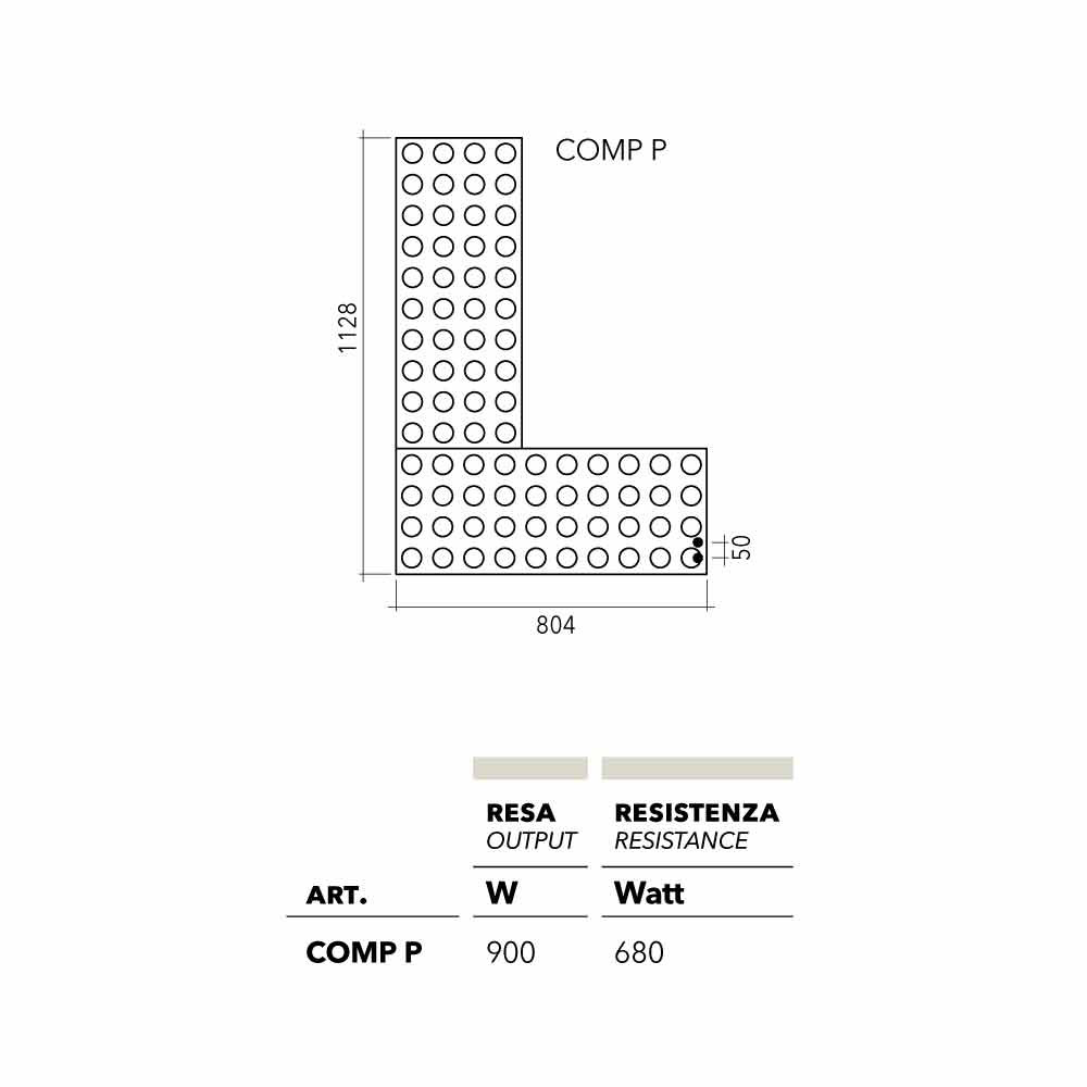 - Nucleo riscaldante formato da batteria in lamelle di alluminio e tubazioni di andata e ritorno in rame