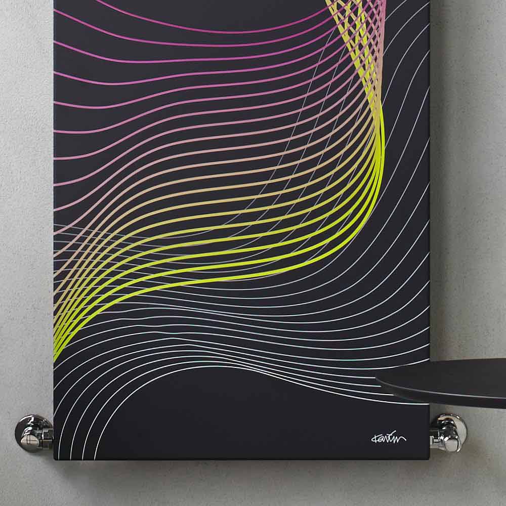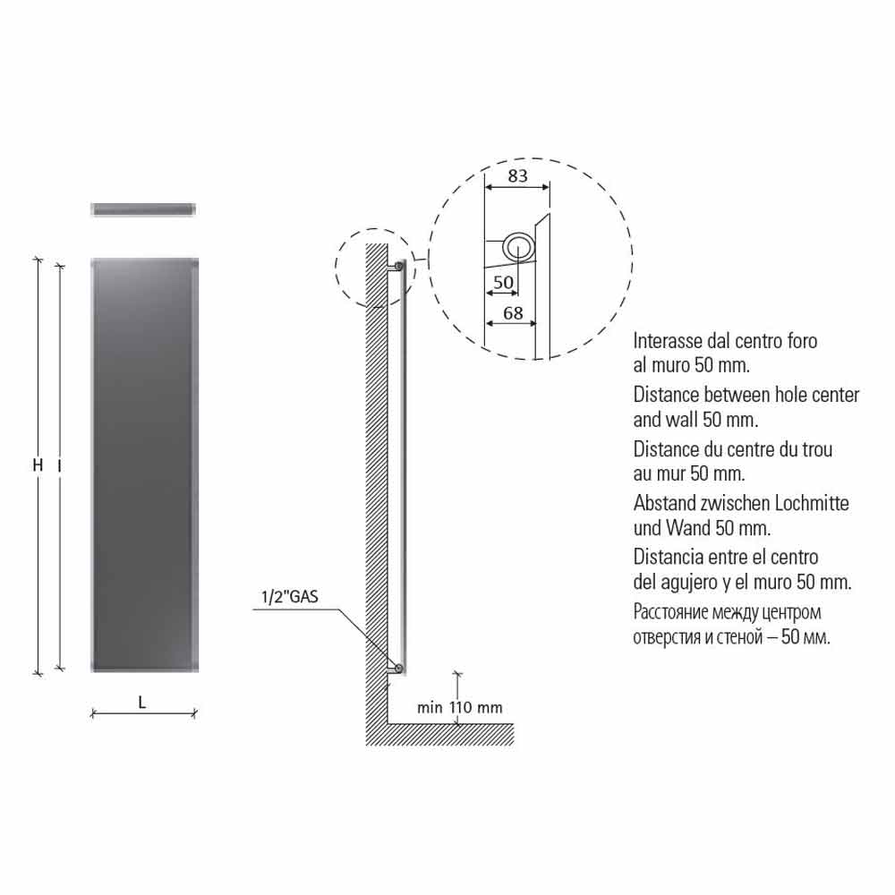 Termoarredo di design in acciaio verticale installazione a parete, made in Italy.
