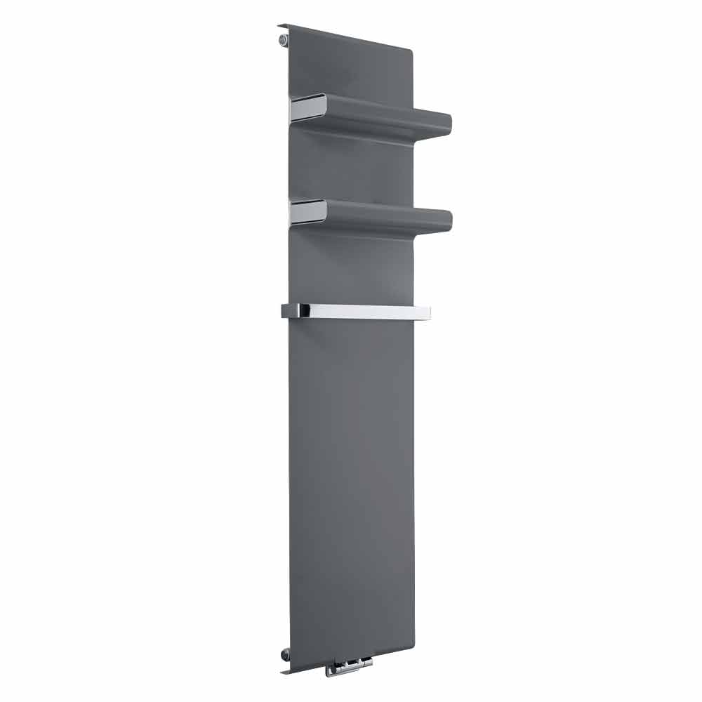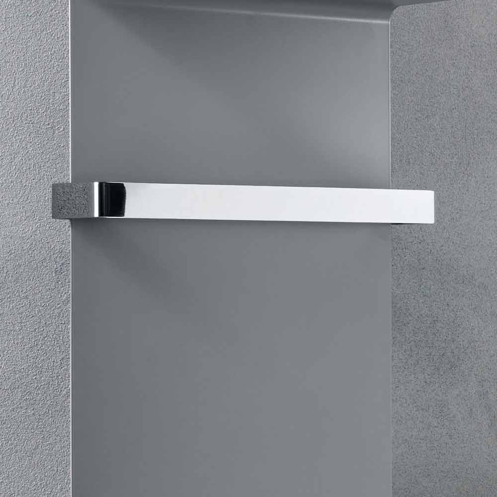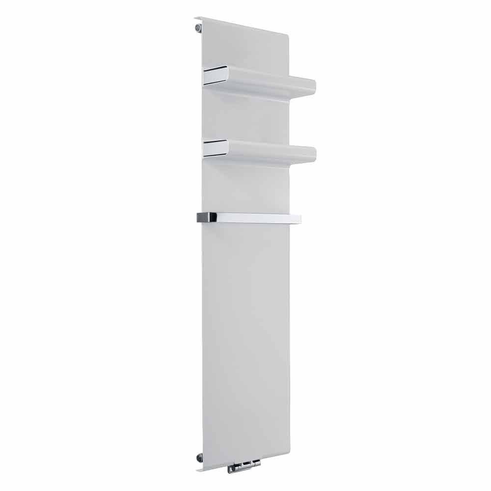 piastra radiante idraulica presenta un design moderno e minimale con pratiche ed eleganti mensole integrate con copertura inclusa e barra porta asciugamano cromata, che estende la larghezza del radiatore di 4 cm.