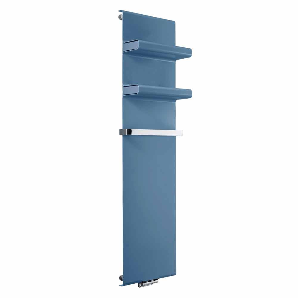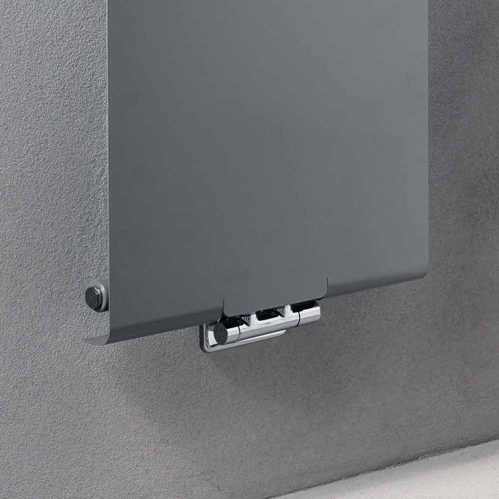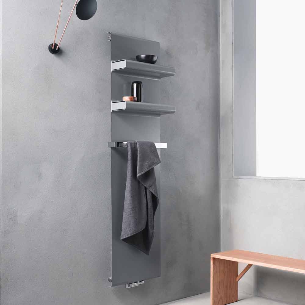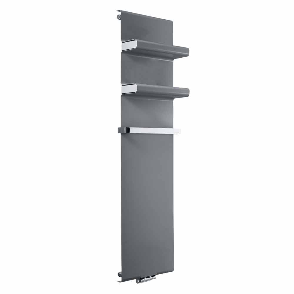 piastra radiante idraulica presenta un design moderno e minimale con pratiche ed eleganti mensole integrate con copertura inclusa e barra porta asciugamano cromata, che estende la larghezza del radiatore di 4 cm.