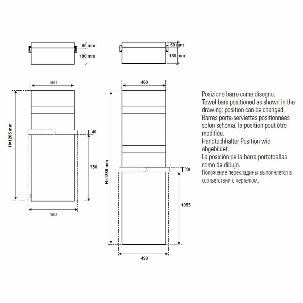 - H 1865 x L 460 x Inter.1760 mm x Resa w(Δt50*) 719; Resa w(Δt30*) 379; Resa w(Δt26*) 316 (2 mensole).
