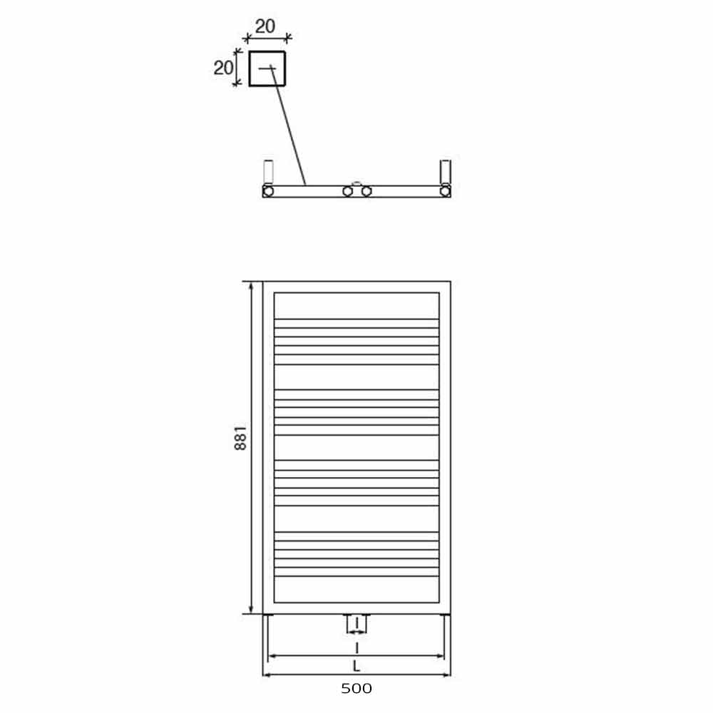 Questo radiatore idraulico presenta un design cromato con tubi quadri verticali di 30x30 mm e tubi quadri orizzontali di 20x20 mm.