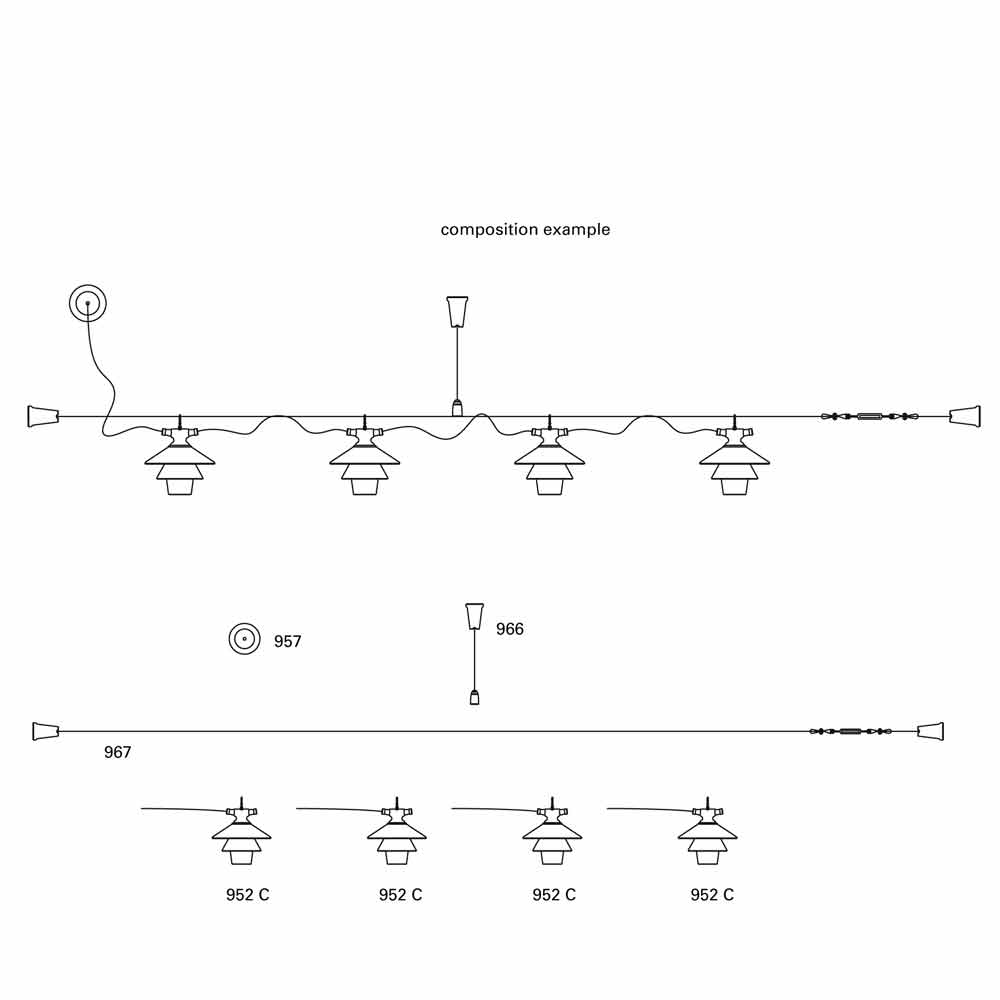 Grazie al rosone Battersea è possibile unire diversi tipi di lampade della serie Battersea ( art. 951, 954-22 , 952) creando interessanti giochi di luce.