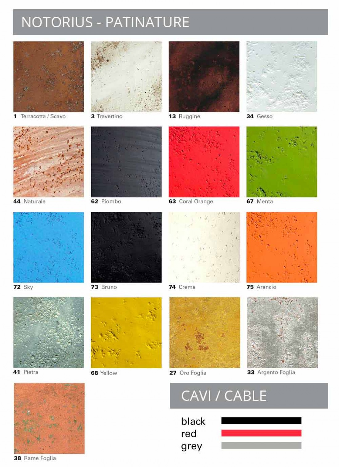 Nota bene: Lampada disponibile in diverse varianti cromatiche, sia per la finitura esterna, sia per quella interna, sia per la tonalità del cavo elettrico. Visualizza la cartella colori ed indica nell'apposito box i codici dei colori desiderati.