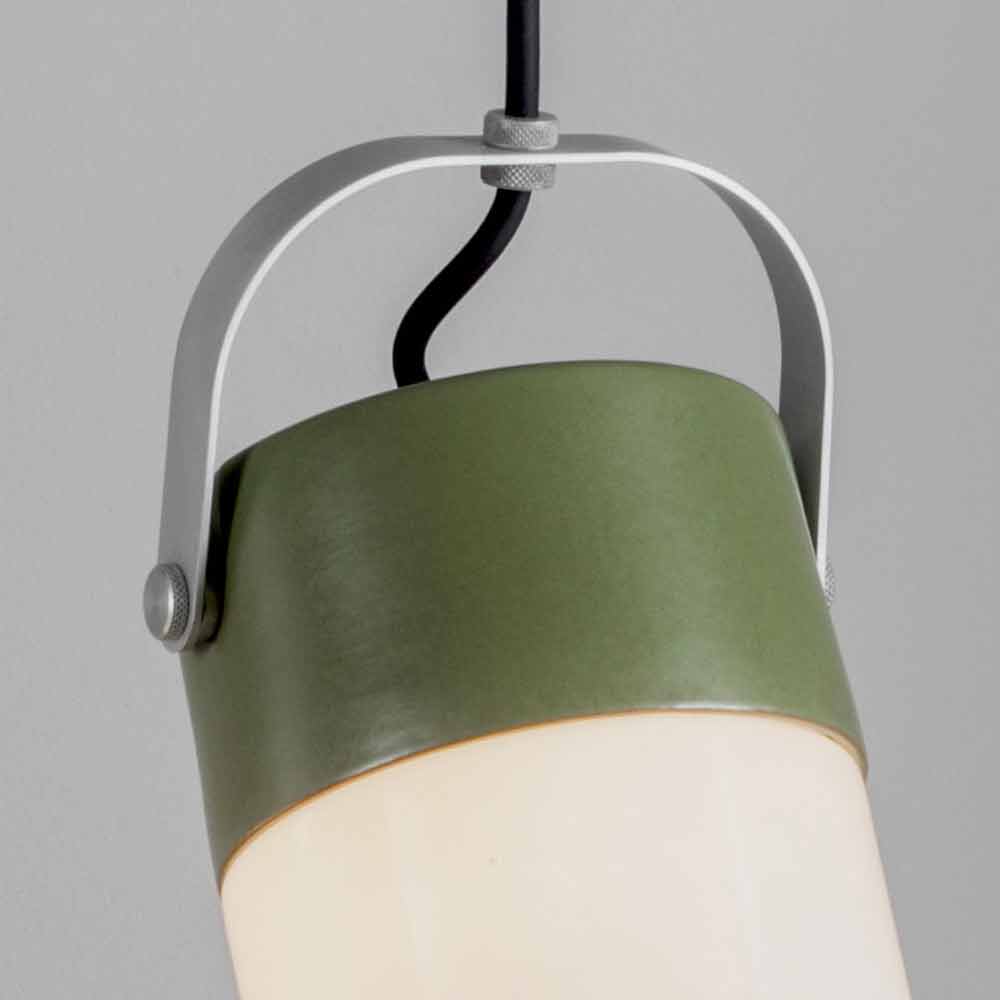 Toscot progetta una lampada “dondolante” con una linea geometrica semplice e cilindrica. Si chiama Swing come il famoso ballo, in inglese dondolare, ed è una lanterna montata a sistema su un cavo d’ acciaio con un manico che le permette questo movimento ondulatorio. I materiali utilizzati sono l’ alluminio, la terracotta con decori a freddo e gli smalti che chiudono il vetro diffusore. É disponibile anche come applique e inoltre può essere utilizzata per progetti in esterno.