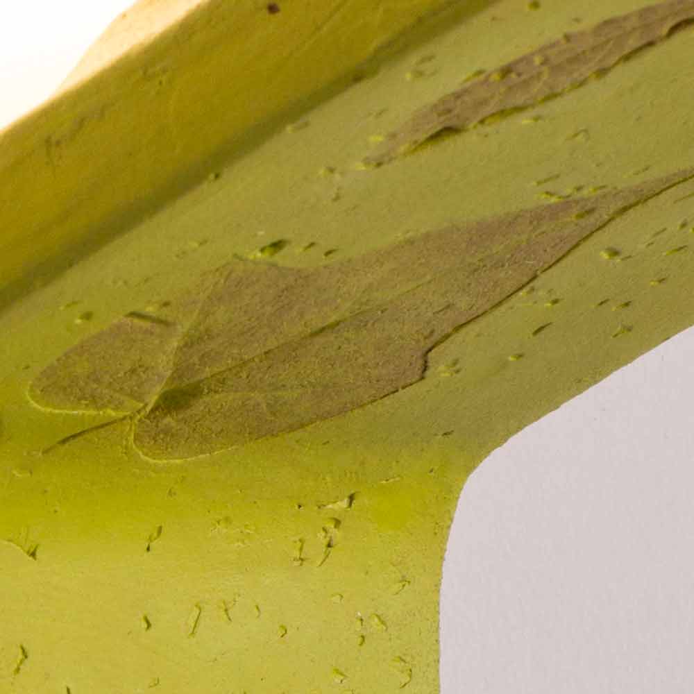 Il disegno di questo decoro è prodotto usando foglie vere pressate a mano direttamente nel calco.
