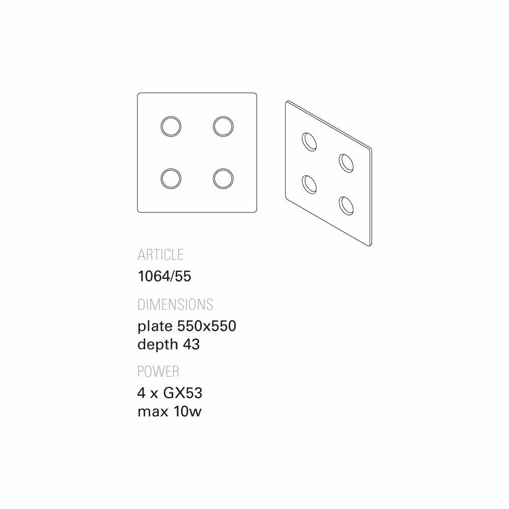 Lampadine necessarie 4 x GX53 max 10w (non inclusa nel prezzo).