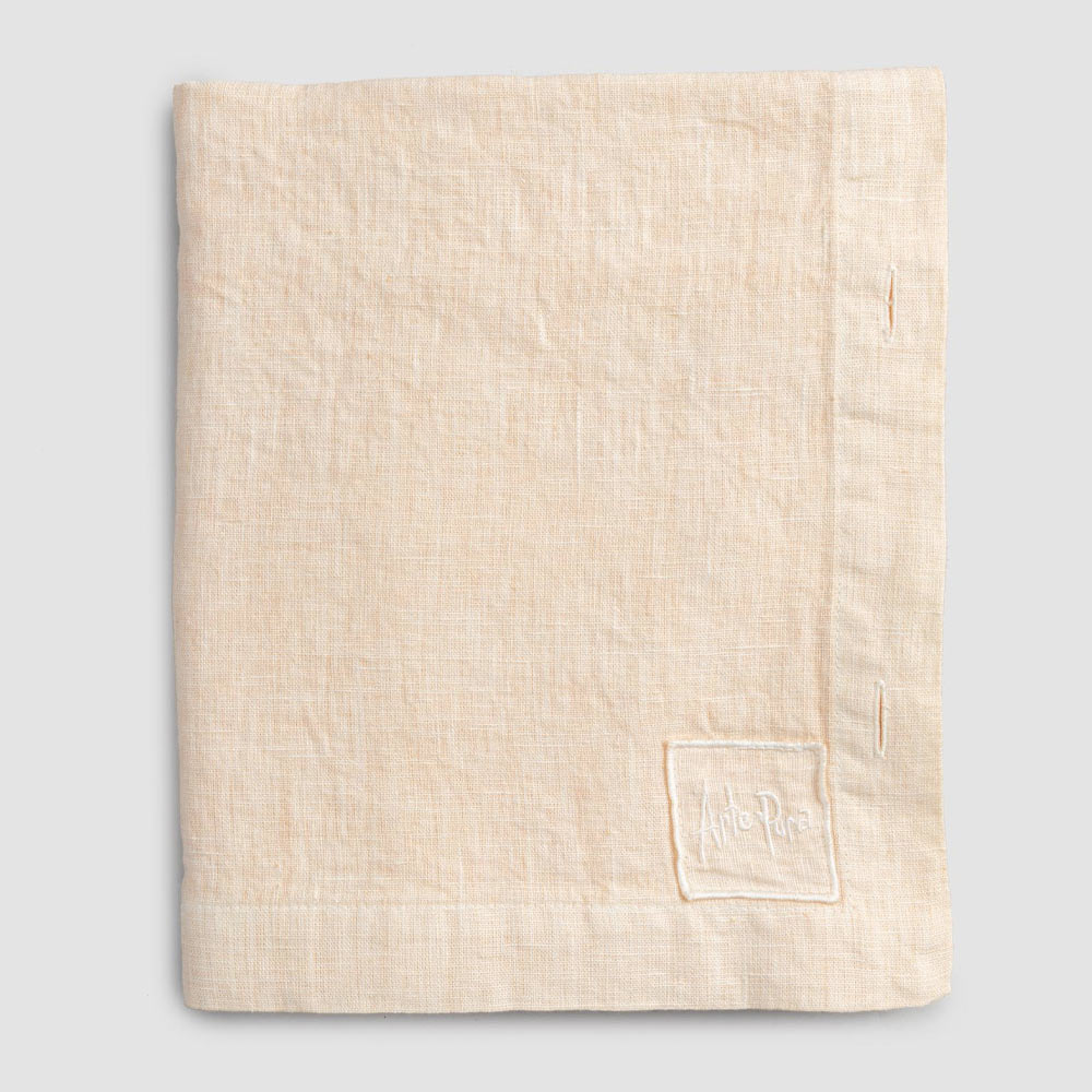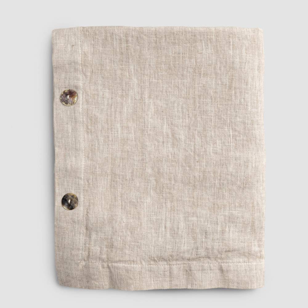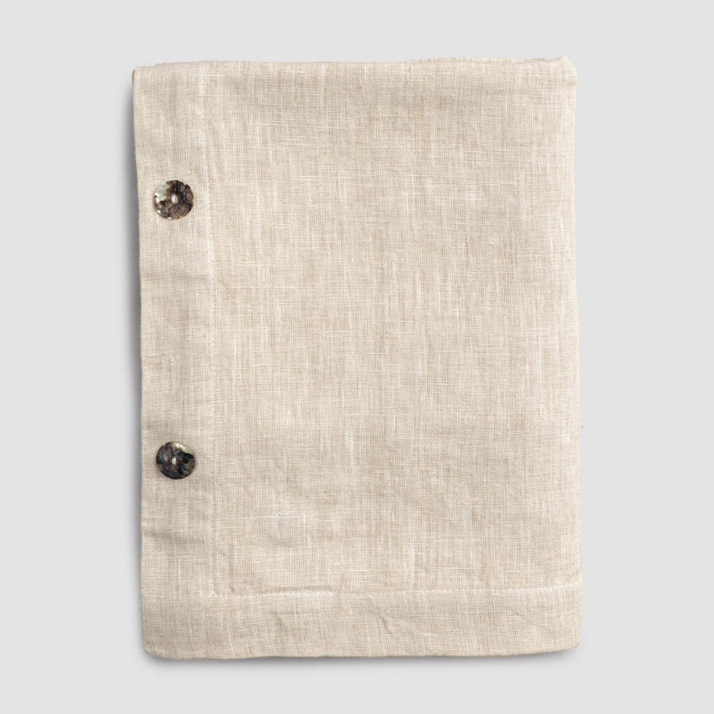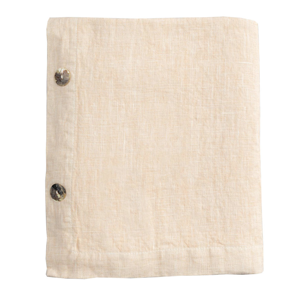Tovaglia rettangolare componibile in lino con bottoni in madreperla, qualità artigianale made in Italy.