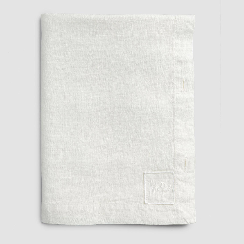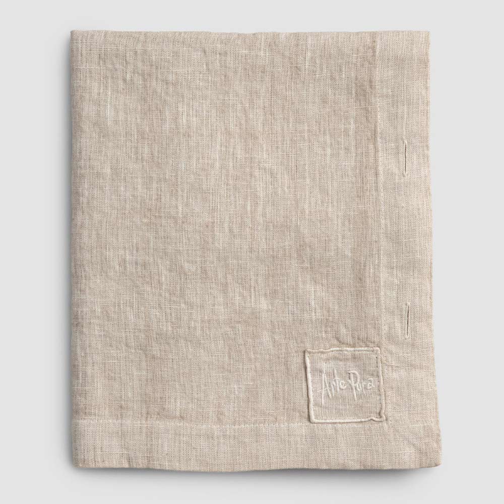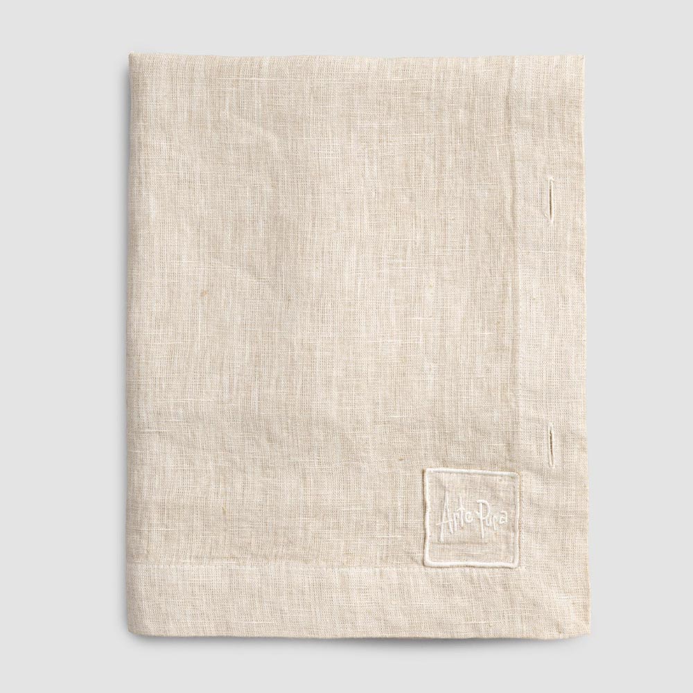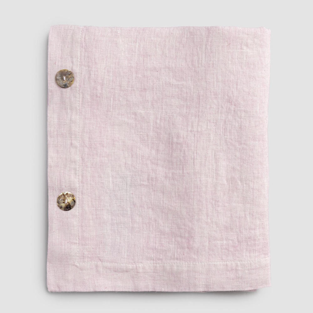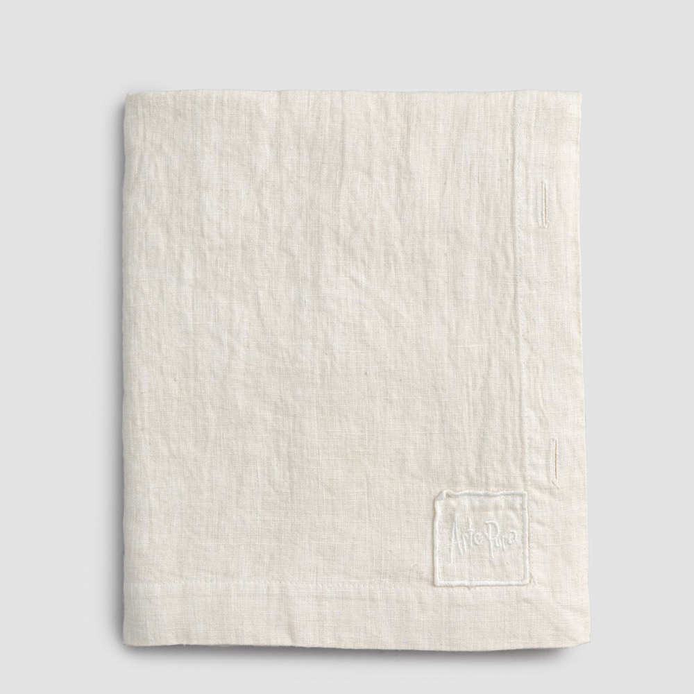 Tovaglia rettangolare componibile in lino con bottoni in madreperla, qualità artigianale made in Italy.