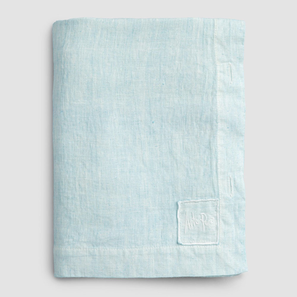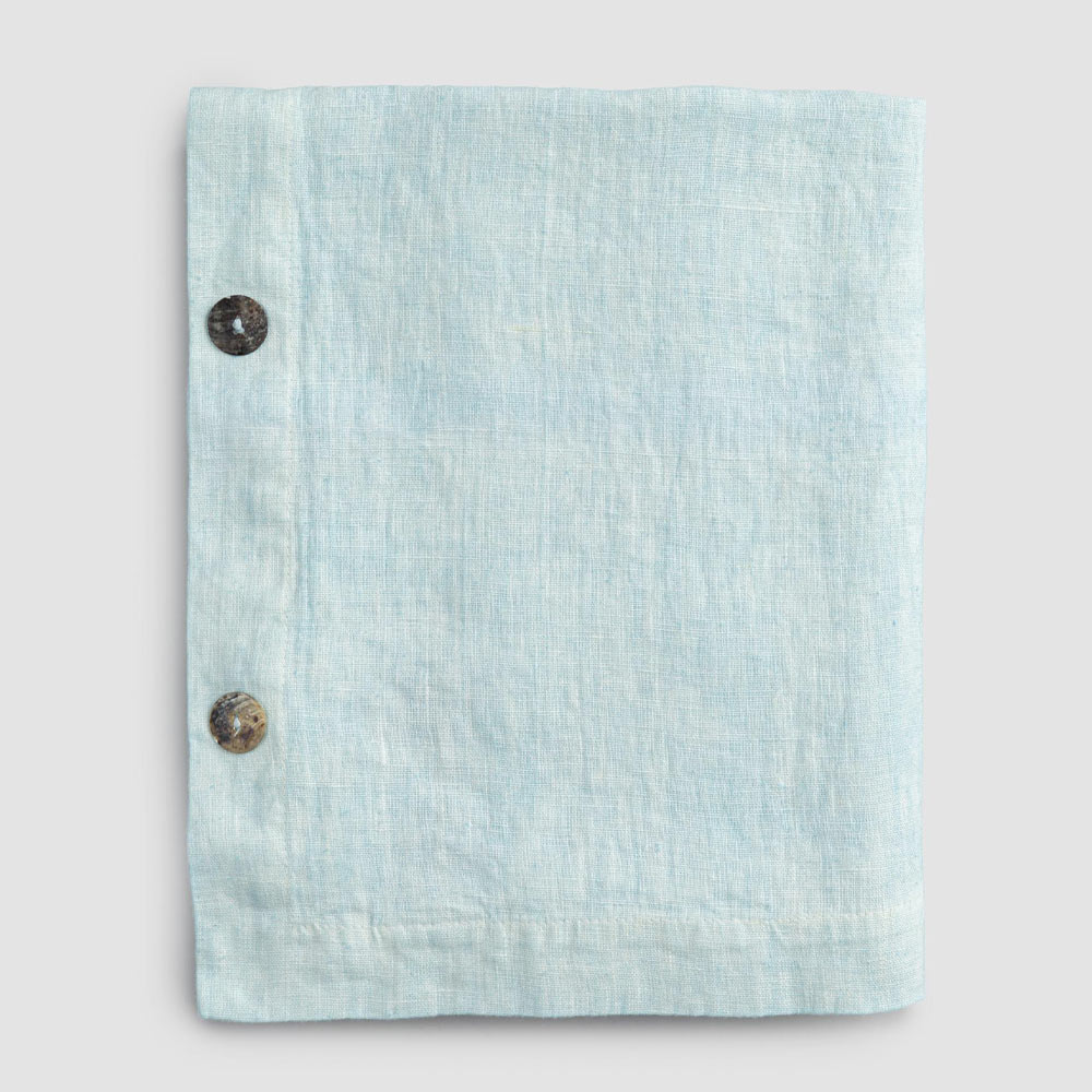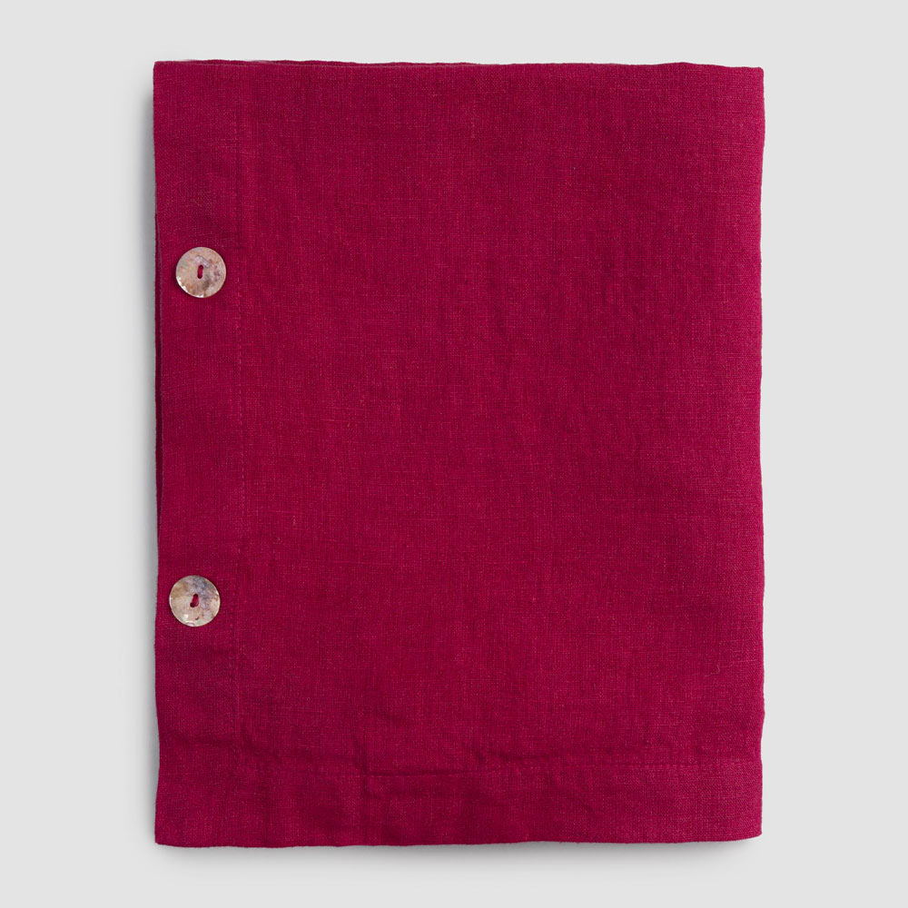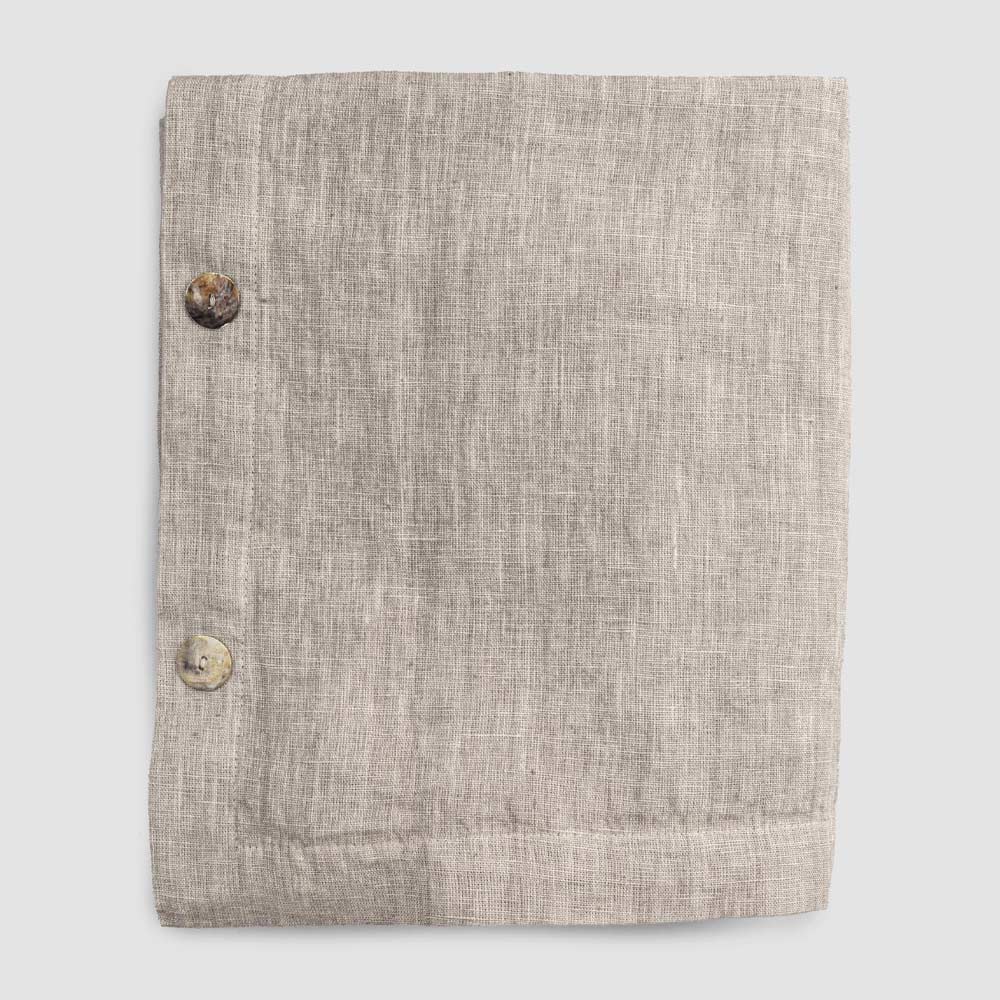 Tovaglia rettangolare componibile in lino con bottoni in madreperla, qualità artigianale made in Italy.