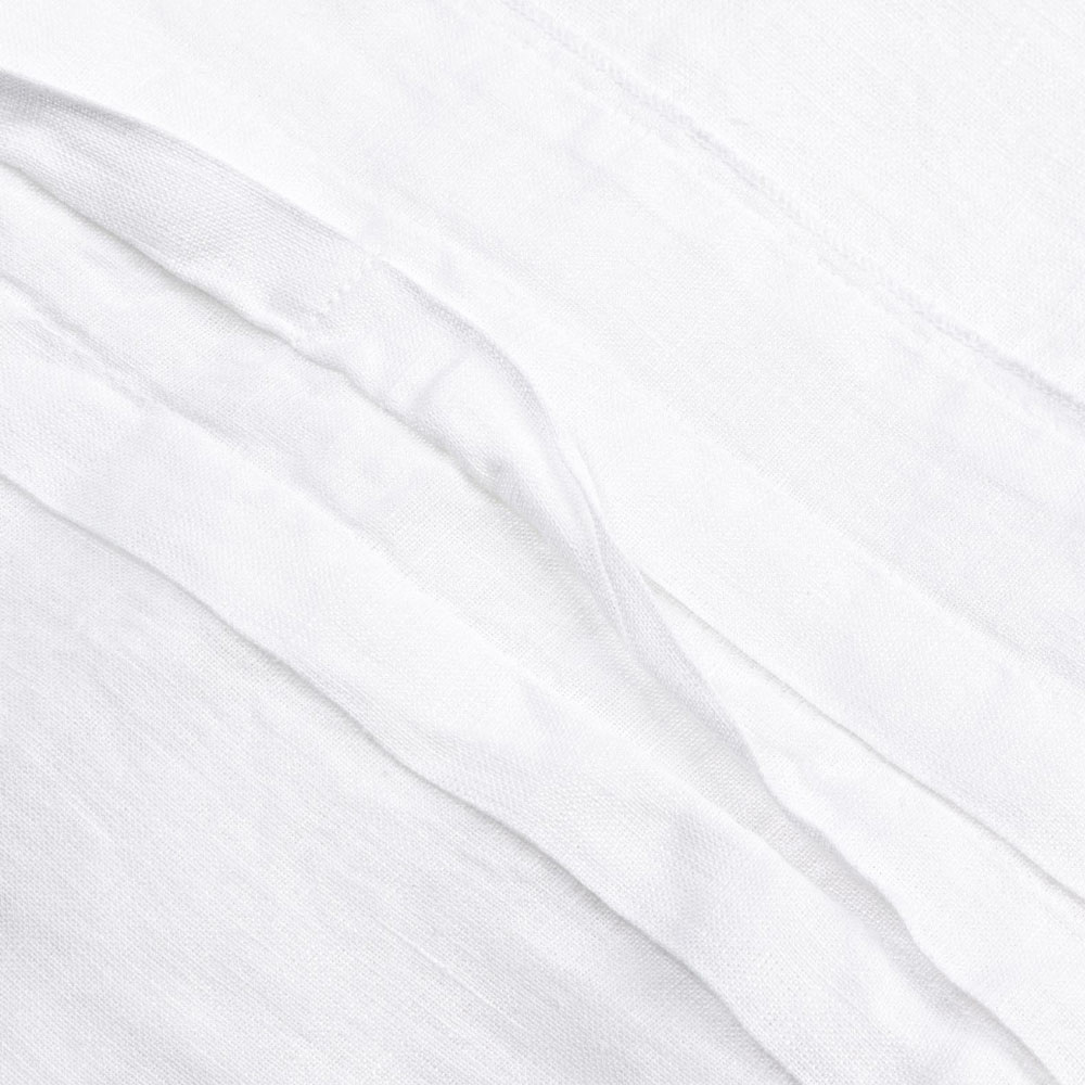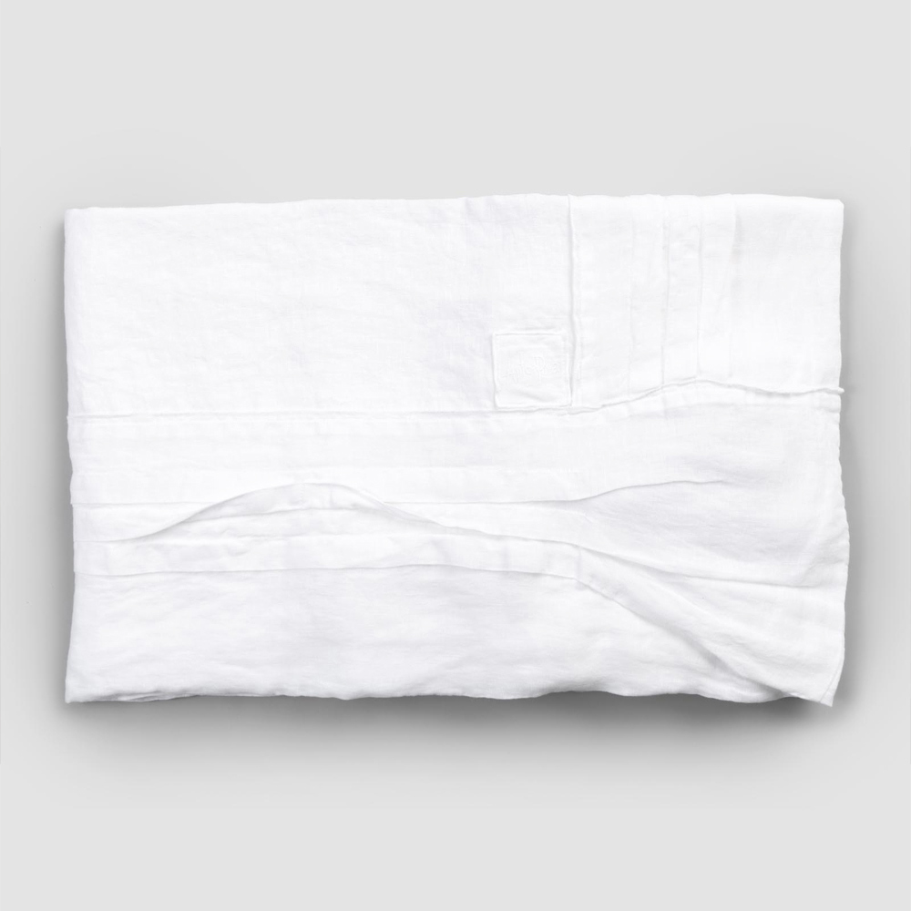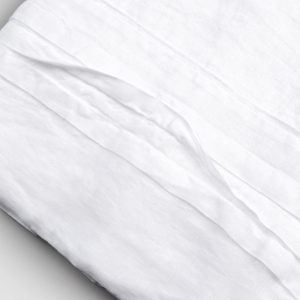 Tovaglia in lino bianco con bordo dal motivo a pieghe, lusso made in Italy.