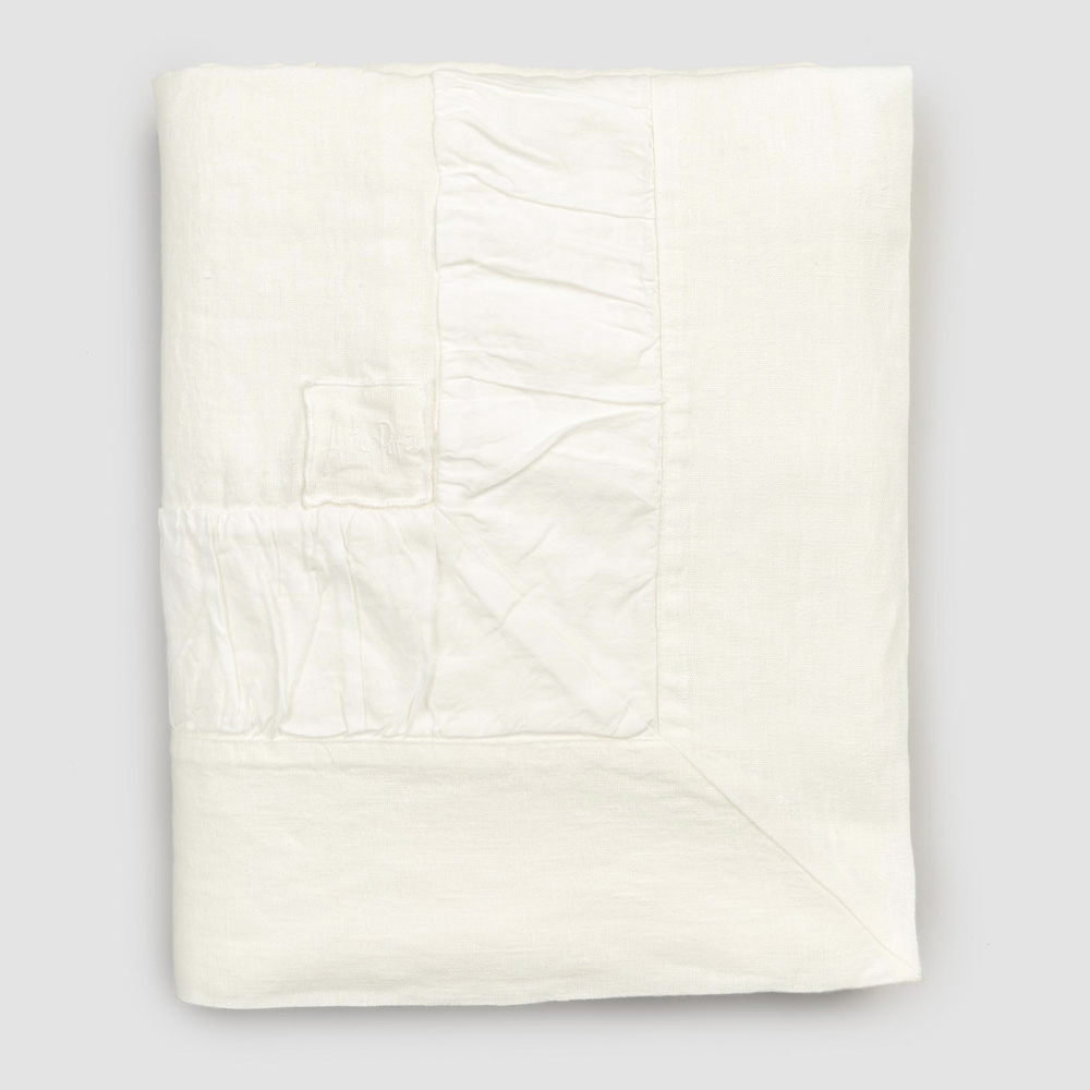 tovaglia in lino bianco rettangolare e impreziosita da cornice