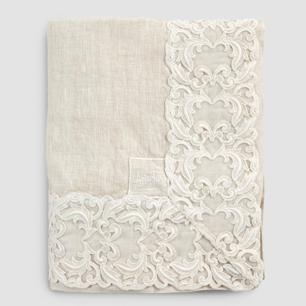 Tovaglia in lino con pizzo farnese rettangolare, articolo pregiato made in Italy.