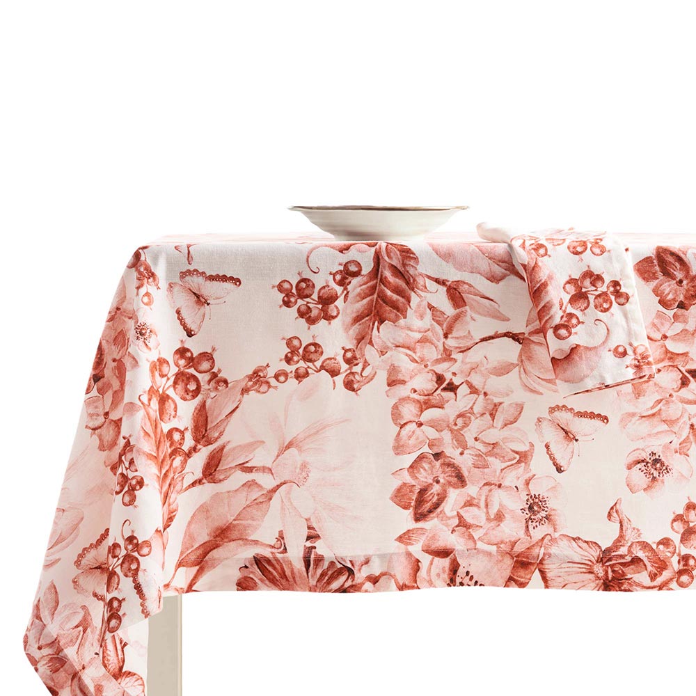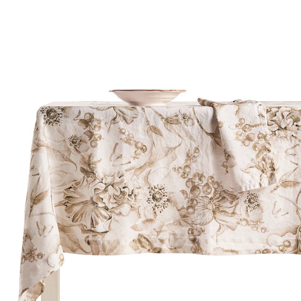 Questa tovaglia in puro lino stampato e lavato in capo è un vero capolavoro di eleganza e stile. Il suo disegno floreale rigoglioso porta un tocco di natura e freschezza a ogni tavola, rendendola ideale per ogni occasione, dalle cene formali ai pranzi familiari rilassati. La qualità del lino puro, noto per la sua durata e resistenza, garantisce che questa tovaglia rimanga un elemento centrale della vostra tavola per anni.