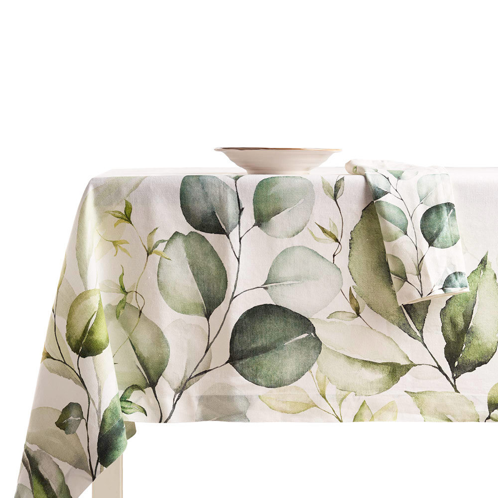 Questa tovaglia in puro lino stampato e lavato in capo è l'ideale per aggiungere un tocco di natura e raffinatezza alla tua tavola. Caratterizzata da una fantasia di foglie verdi, questa tovaglia porta l'eleganza della natura direttamente nella tua sala da pranzo, creando un'atmosfera calda e accogliente che invita a momenti condivisi a tavola.
