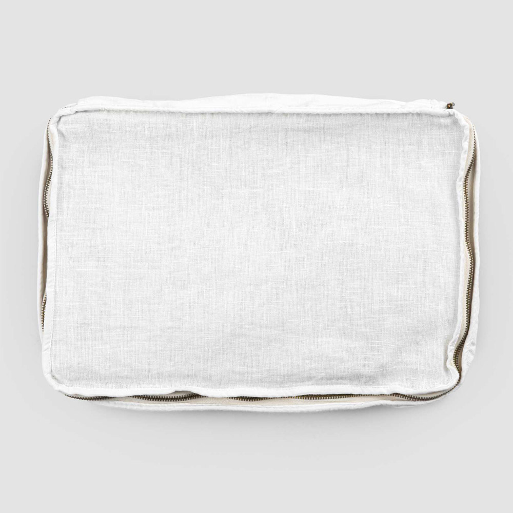 Trousse rettangolare in lino e cotone retrò o gesso old con chiusura lampo, made in Italy.