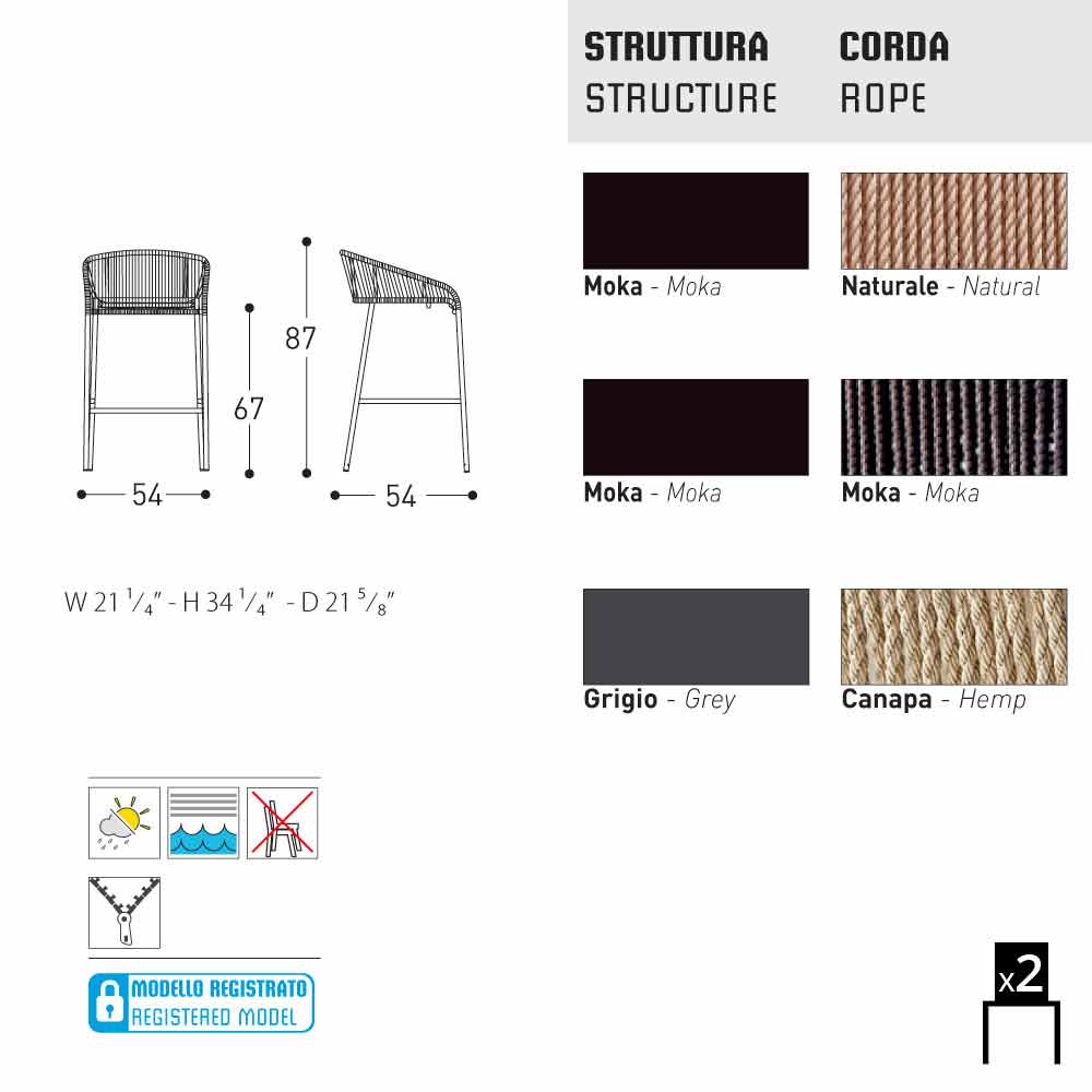 Set composto da 2 sgabelli intrecciati a mano in fibra sintetica con intelaiatura in alluminio verniciato. Lo sgabello Cricket by Varaschin può essere utilizzato all'esterno, ma anche per arredare ambienti indoor.