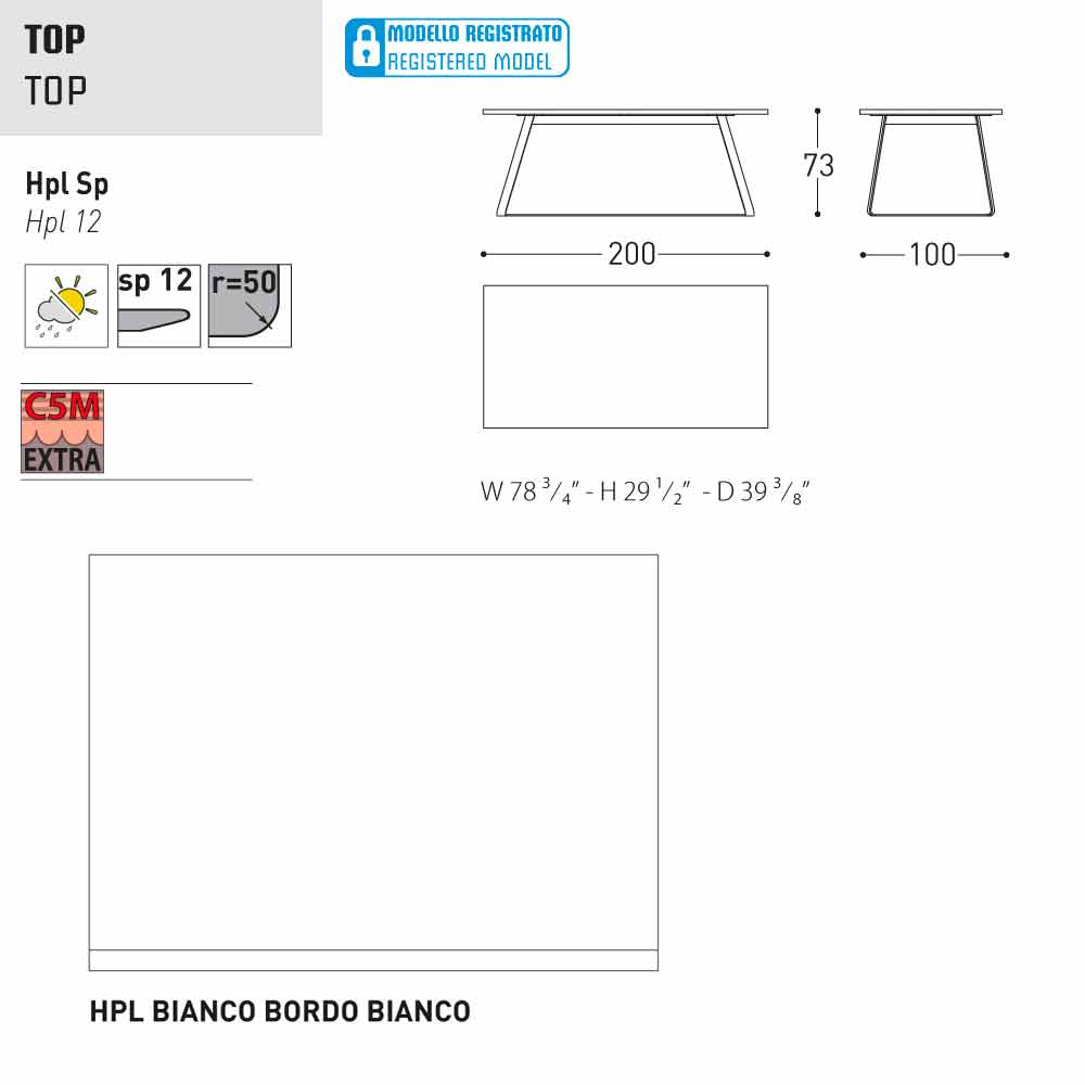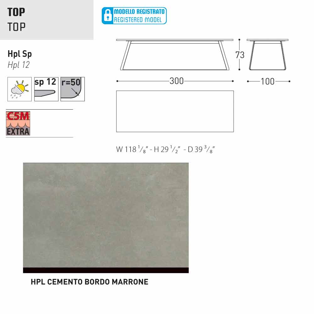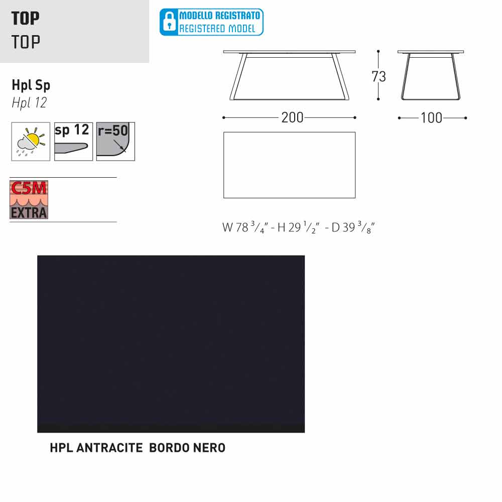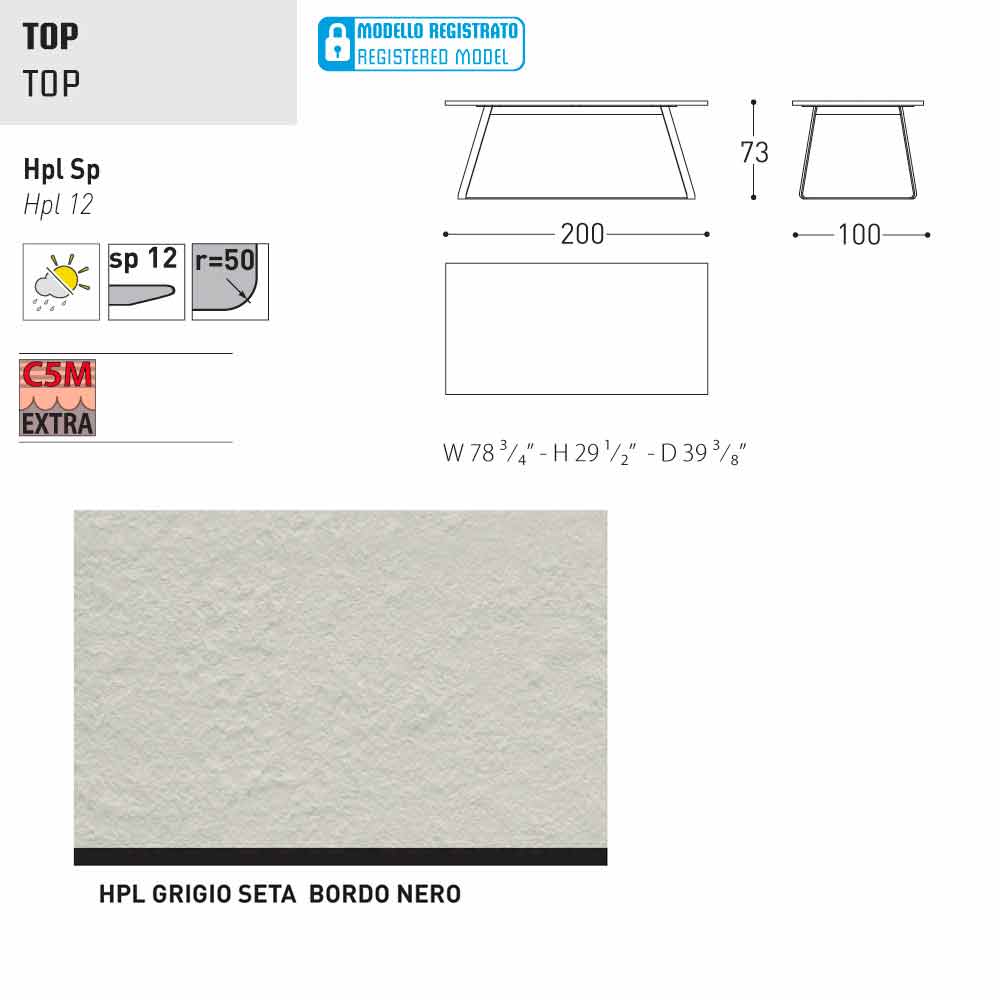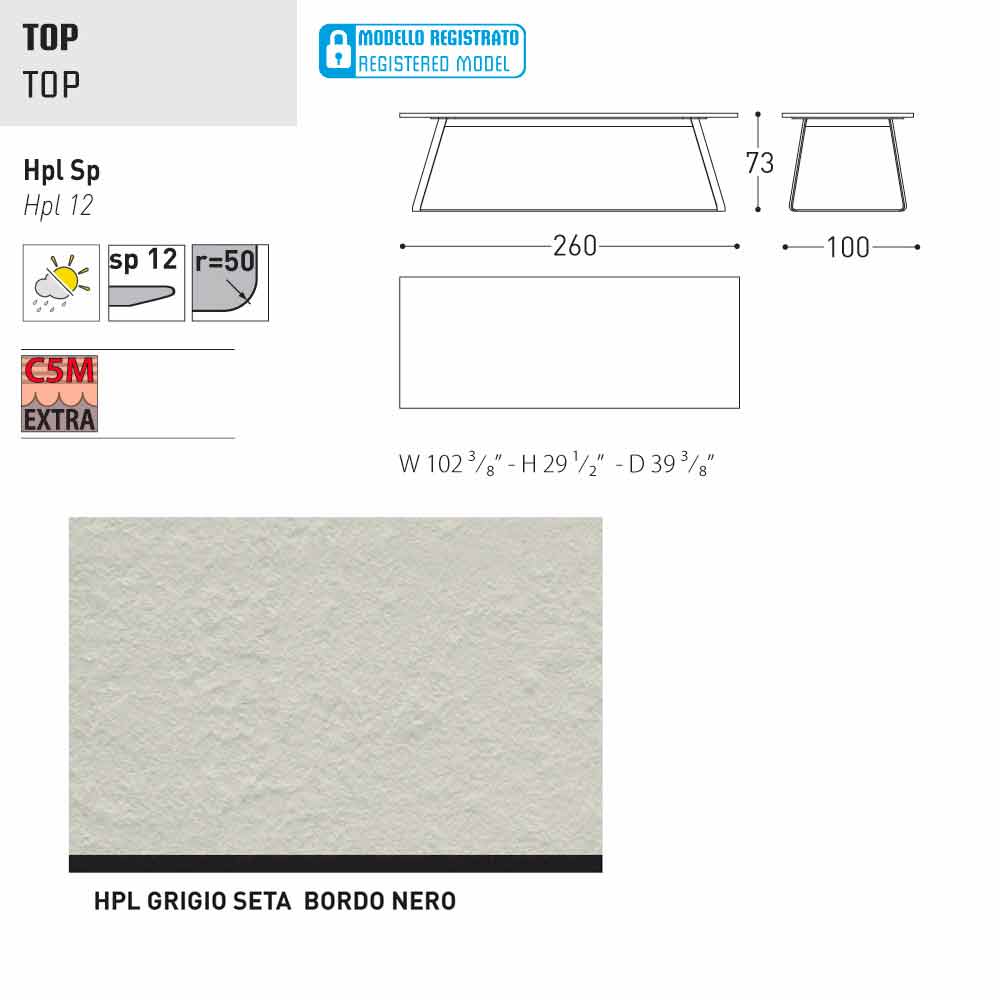 Caratteristiche HPL: laminati ad alta pressione. Sono costituiti da numerosi strati di carta (70%) impregnati con resine termoindurenti (30%) e compattati attraverso l'azione combinata di calore (circa 150 gradi ) e alta pressione (maggiore di 7Mpa) per circa 45-50 minuti. Il risultato è un prodotto stabile, non reattivo, non poroso e di alta densità, con caratteristiche fisiche e chimiche di alta resistenza meccanica (escursione termica controllata +80; -40 gradi, su tempo limitato inferiore ai 30 secondi alle temperature estreme), esposizione alla luce ed esposizione alle variazioni di temperatura, anche in ambienti marini.