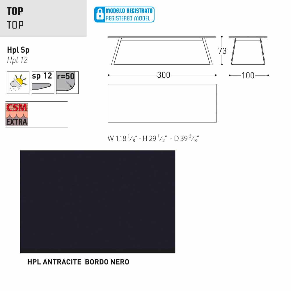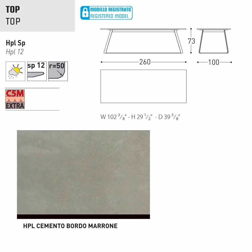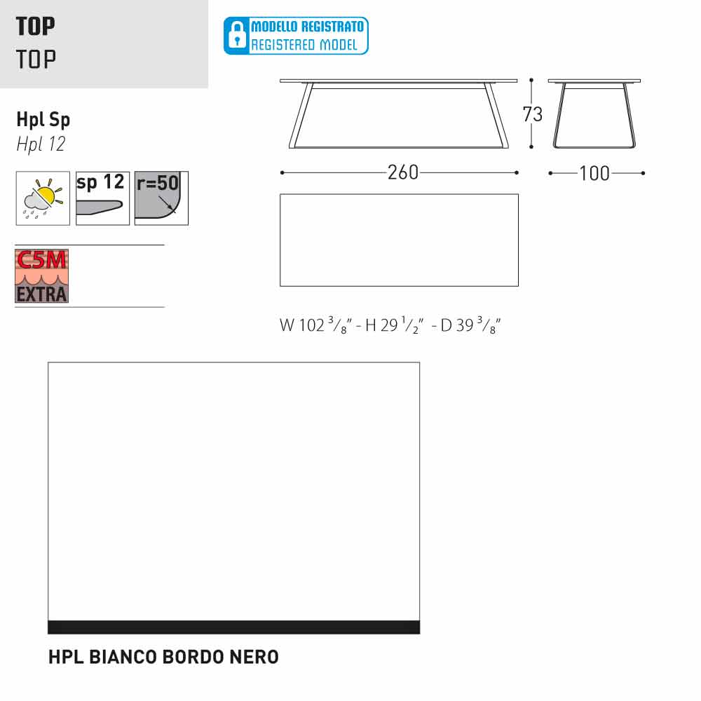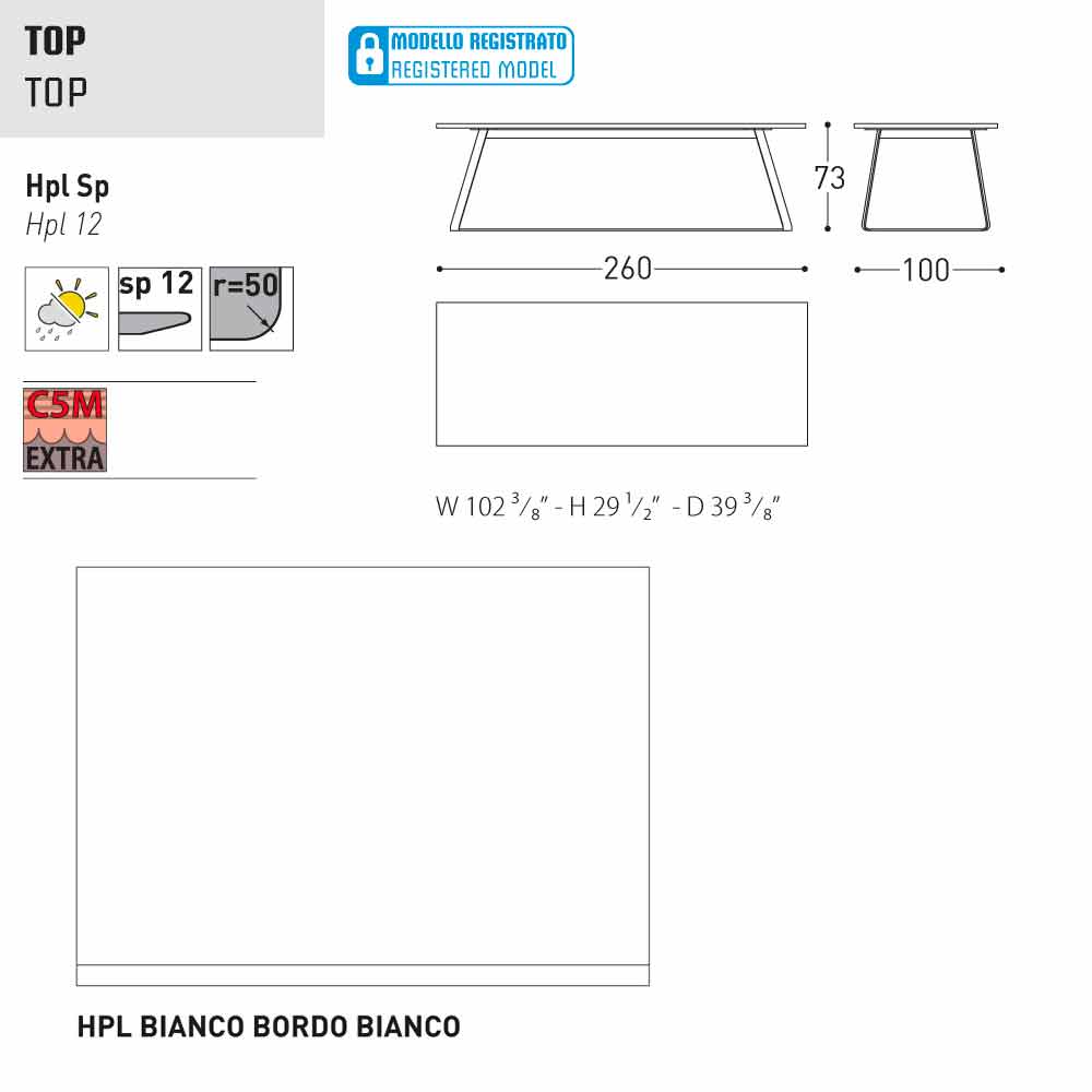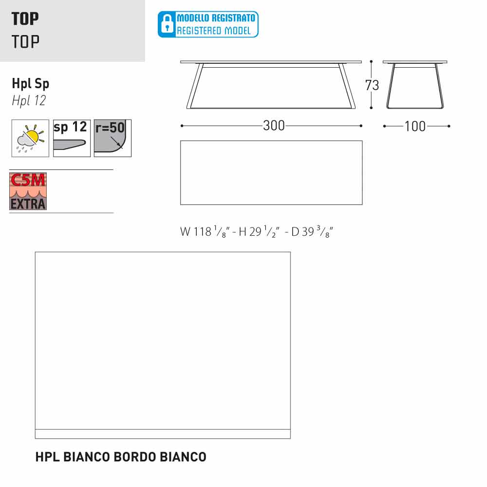 Caratteristiche HPL: laminati ad alta pressione. Sono costituiti da numerosi strati di carta (70%) impregnati con resine termoindurenti (30%) e compattati attraverso l'azione combinata di calore (circa 150 gradi ) e alta pressione (maggiore di 7Mpa) per circa 45-50 minuti. Il risultato è un prodotto stabile, non reattivo, non poroso e di alta densità, con caratteristiche fisiche e chimiche di alta resistenza meccanica (escursione termica controllata +80; -40 gradi, su tempo limitato inferiore ai 30 secondi alle temperature estreme), esposizione alla luce ed esposizione alle variazioni di temperatura, anche in ambienti marini.