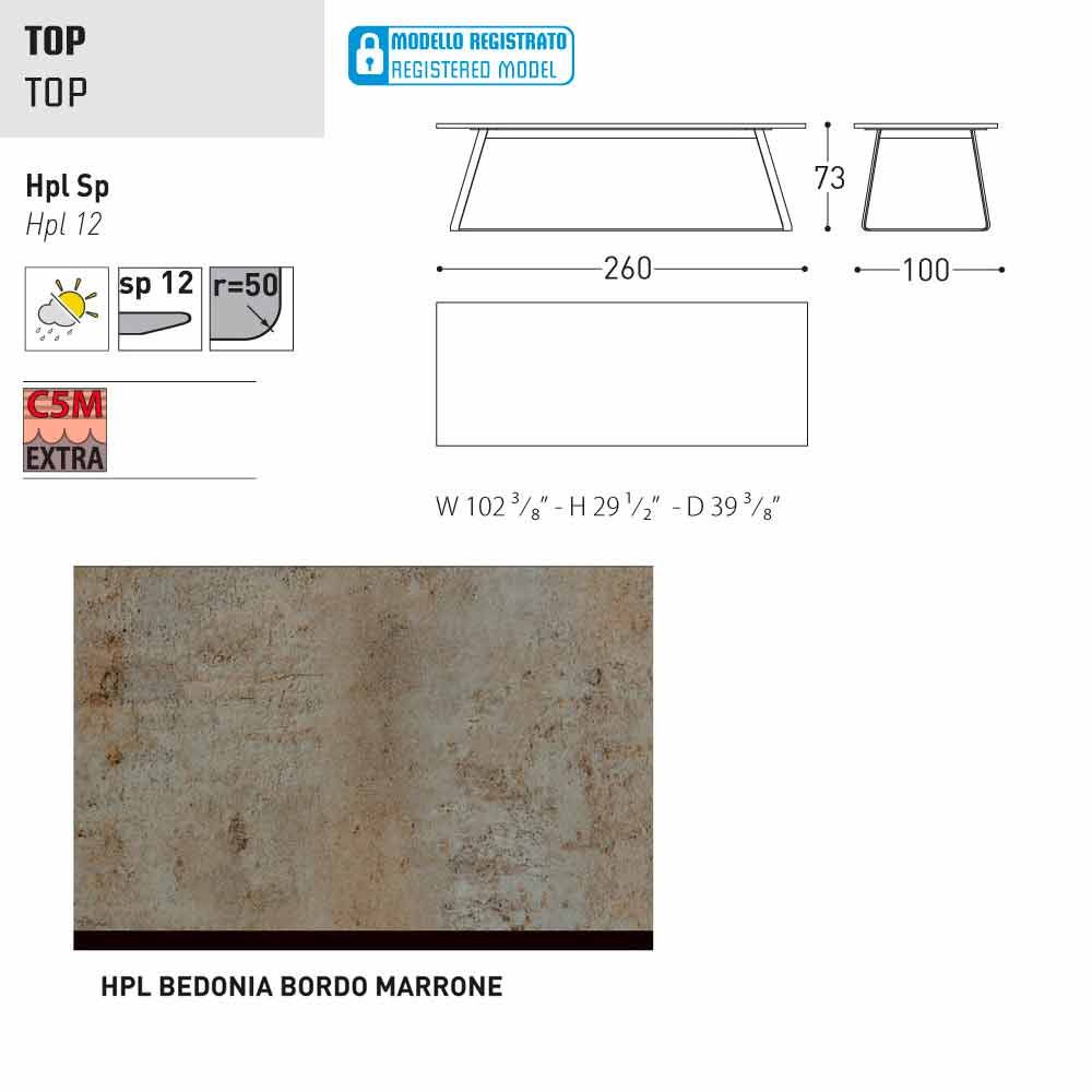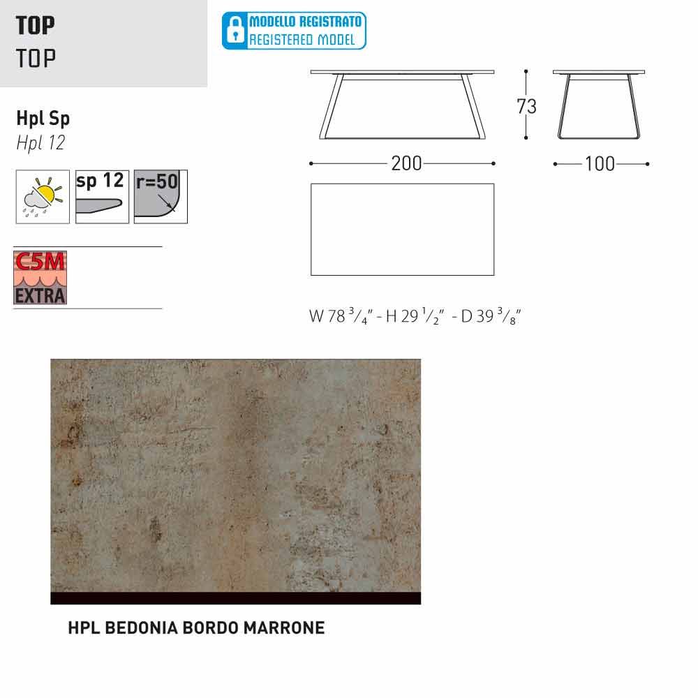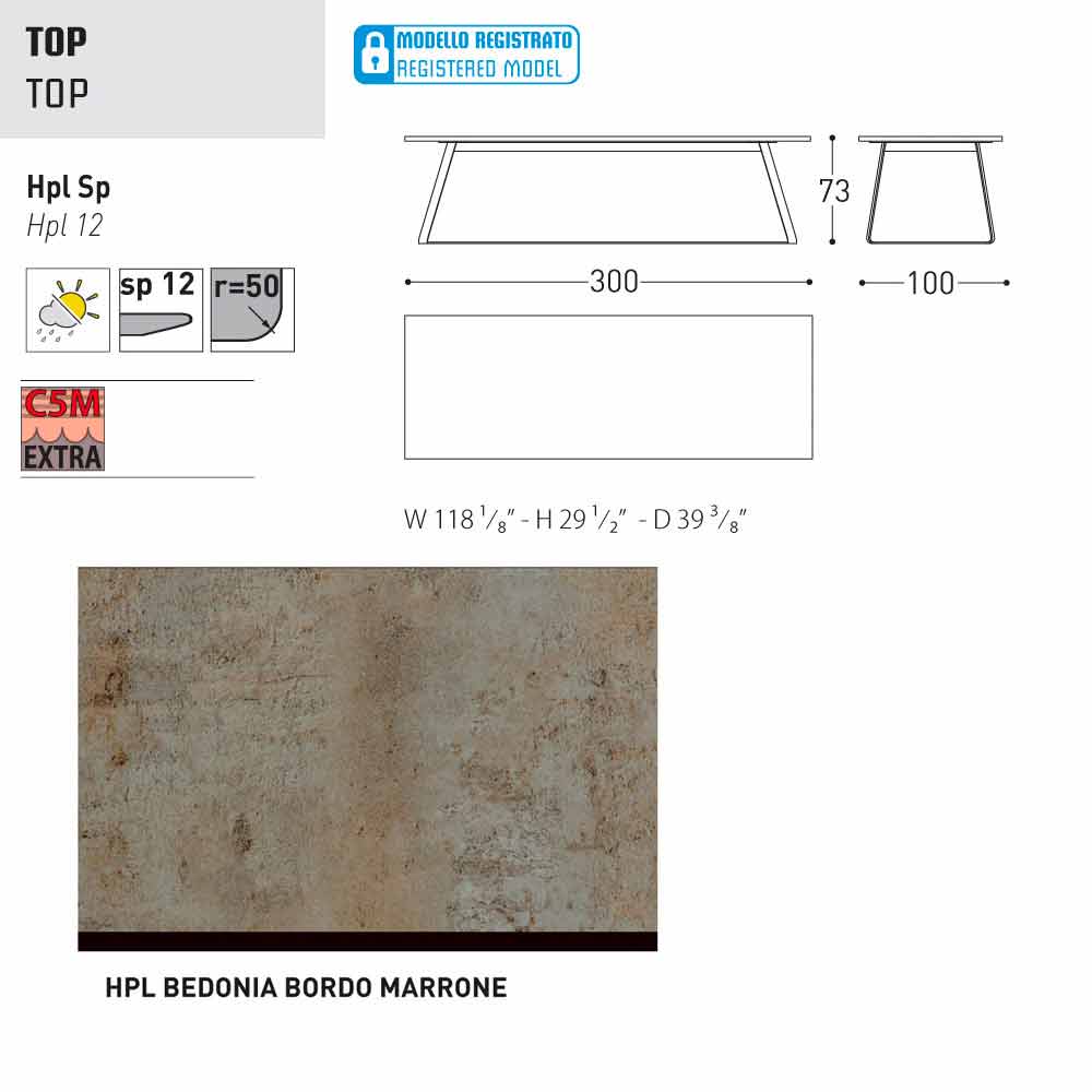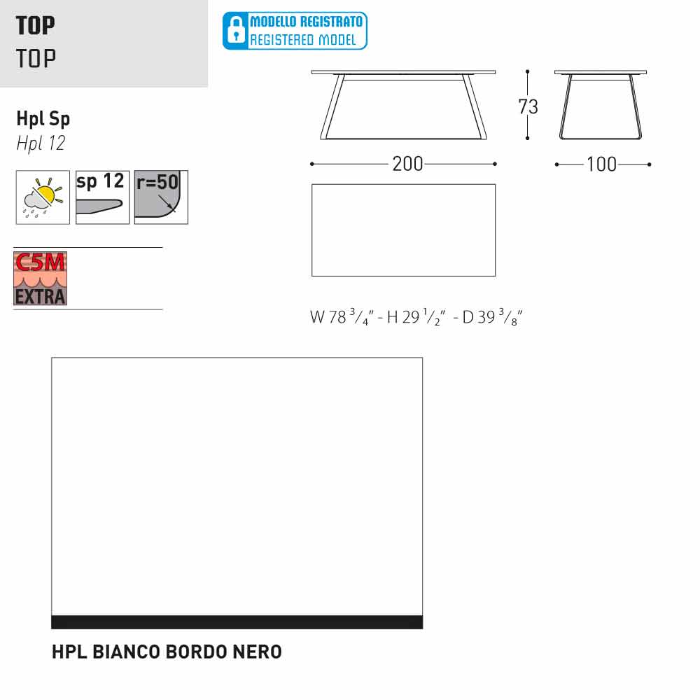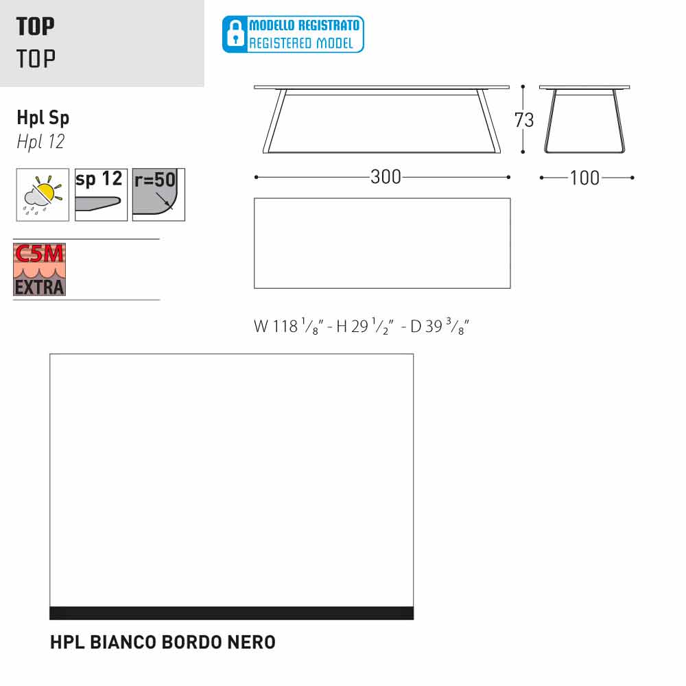 Caratteristiche HPL: laminati ad alta pressione. Sono costituiti da numerosi strati di carta (70%) impregnati con resine termoindurenti (30%) e compattati attraverso l'azione combinata di calore (circa 150 gradi ) e alta pressione (maggiore di 7Mpa) per circa 45-50 minuti. Il risultato è un prodotto stabile, non reattivo, non poroso e di alta densità, con caratteristiche fisiche e chimiche di alta resistenza meccanica (escursione termica controllata +80; -40 gradi, su tempo limitato inferiore ai 30 secondi alle temperature estreme), esposizione alla luce ed esposizione alle variazioni di temperatura, anche in ambienti marini.