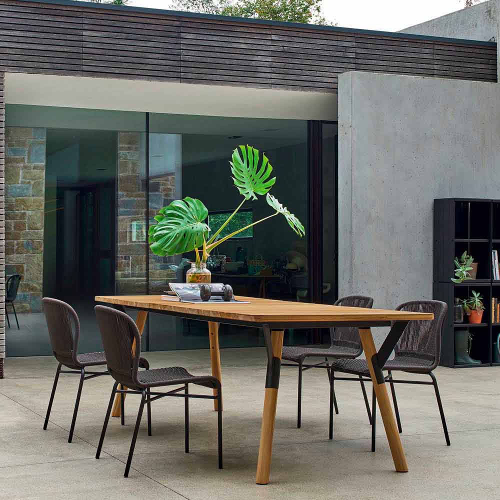 Varaschin Link tavolo da giardino con gambe in legno di teak, H 65 cm