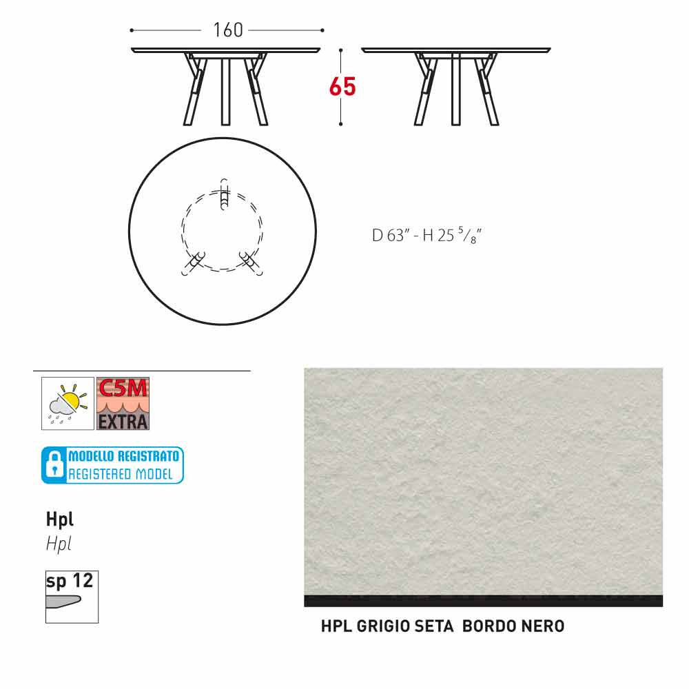 diametro 160x H 65 cm