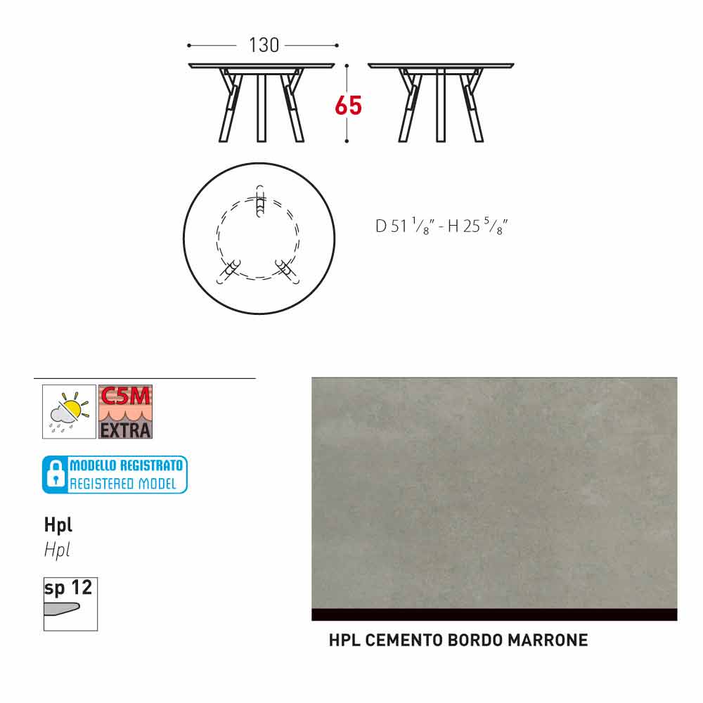 diametro 130x H 65 cm
