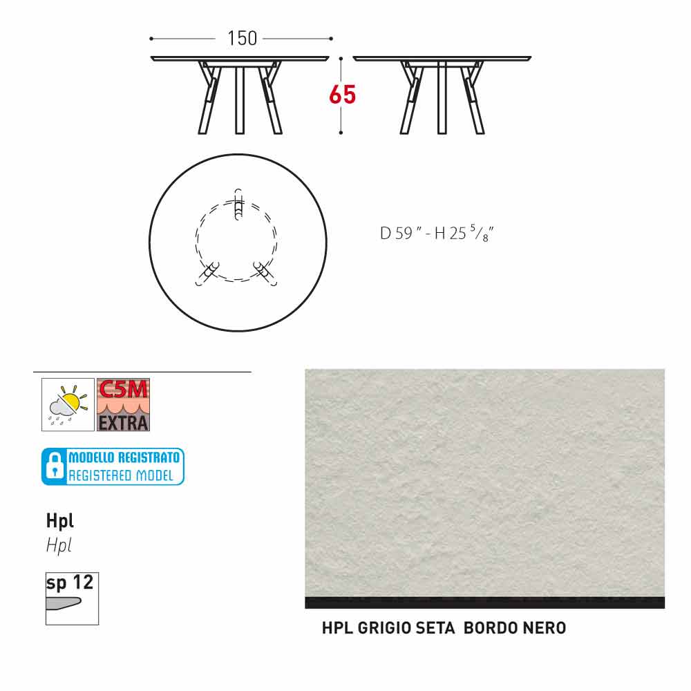 diametro 150x H 65 cm