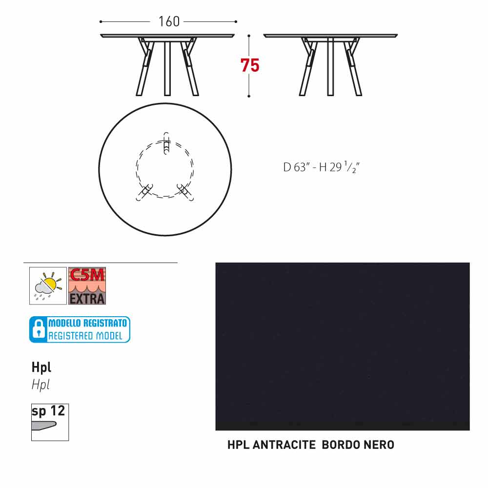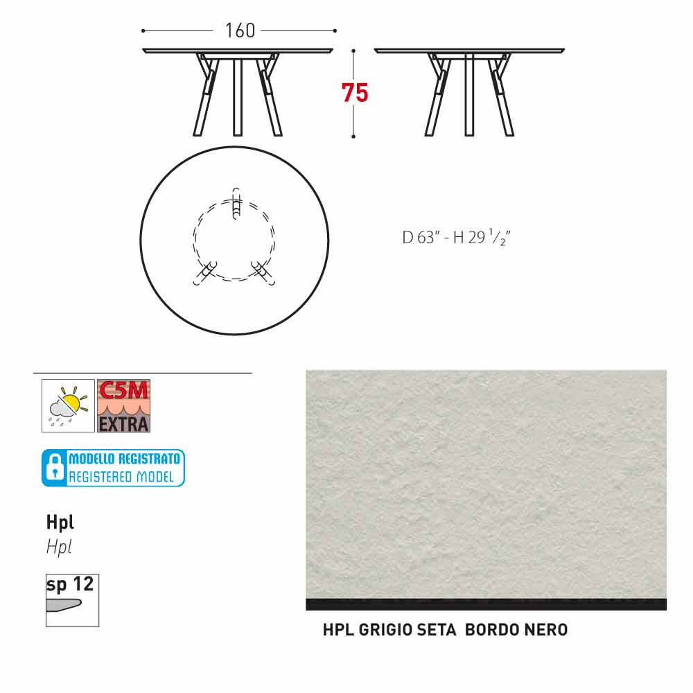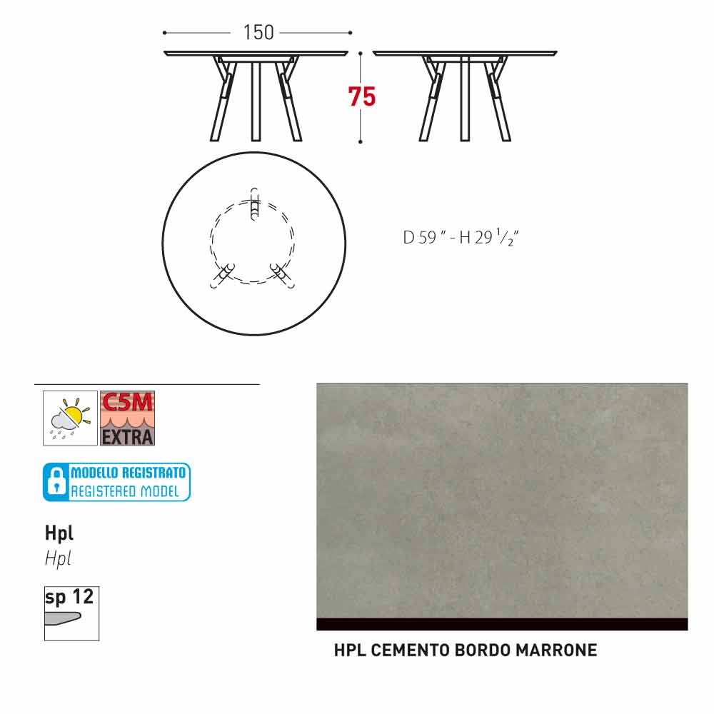 Caratteristiche HPL: laminati ad alta pressione. Sono costituiti da numerosi strati di carta (70%) impregnati con resine termoindurenti (30%) e compattati attraverso l'azione combinata di calore (circa 150 gradi ) e alta pressione (maggiore di 7Mpa) per circa 45-50 minuti. Il risultato è un prodotto stabile, non reattivo, non poroso e di alta densità, con caratteristiche fisiche e chimiche di alta resistenza meccanica (escursione termica controllata +80; -40 gradi, su tempo limitato inferiore ai 30 secondi alle temperature estreme), esposizione alla luce ed esposizione alle variazioni di temperatura, anche in ambienti marini.