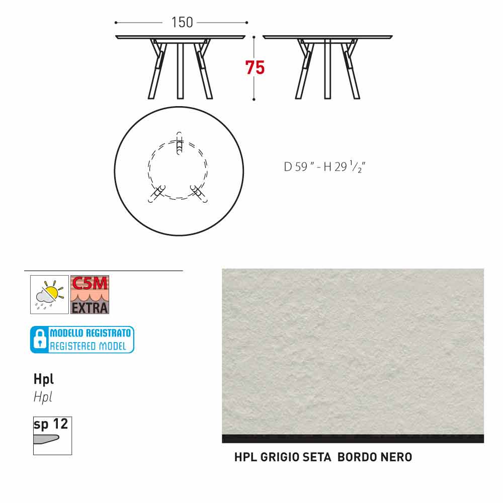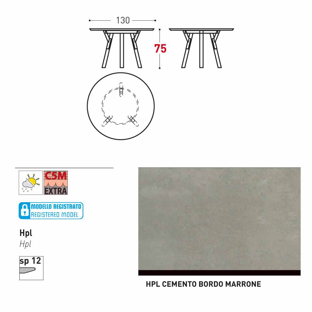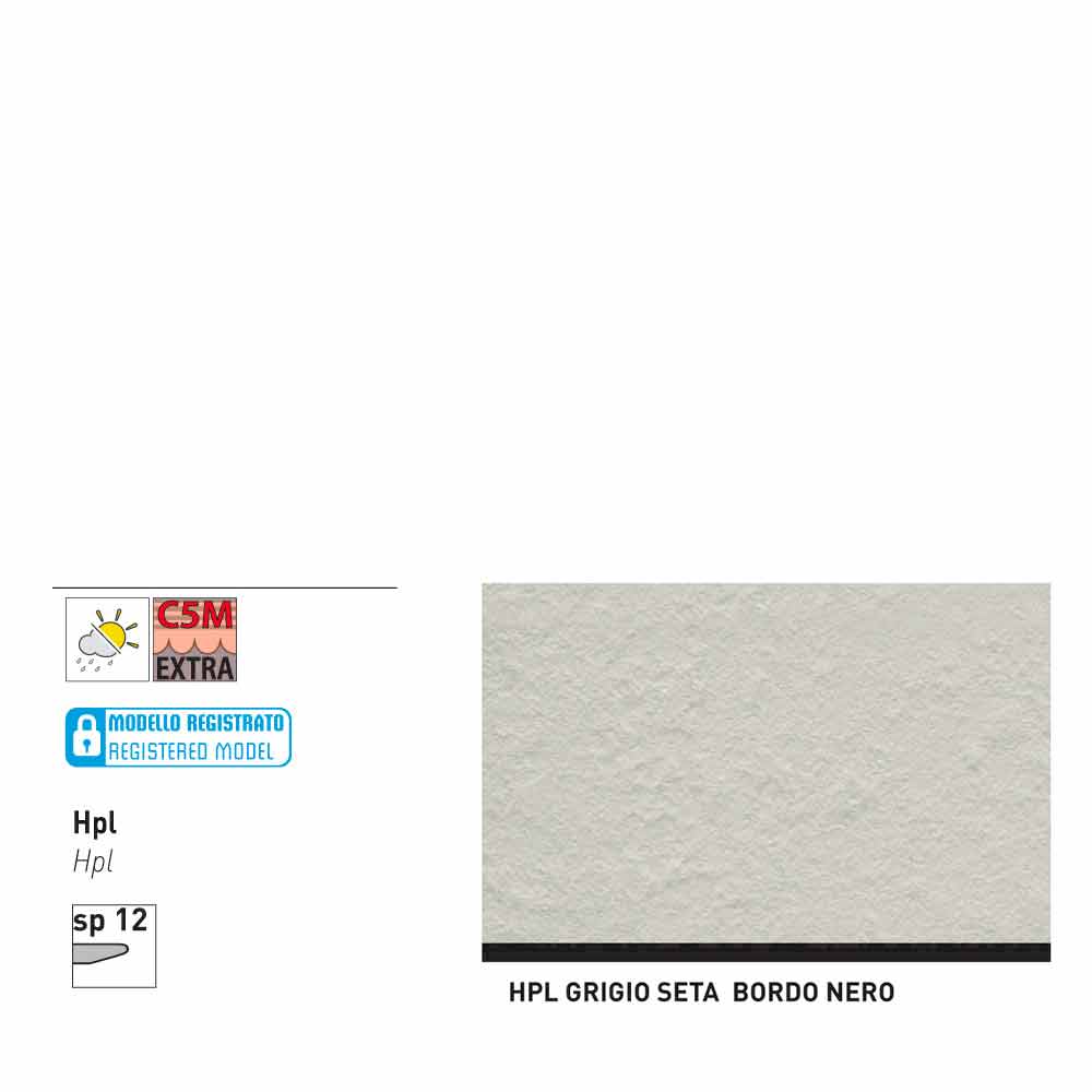 Caratteristiche HPL: laminati ad alta pressione. Sono costituiti da numerosi strati di carta (70%) impregnati con resine termoindurenti (30%) e compattati attraverso l'azione combinata di calore (circa 150 gradi ) e alta pressione (maggiore di 7Mpa) per circa 45-50 minuti. Il risultato è un prodotto stabile, non reattivo, non poroso e di alta densità, con caratteristiche fisiche e chimiche di alta resistenza meccanica (escursione termica controllata +80; -40 gradi, su tempo limitato inferiore ai 30 secondi alle temperature estreme), esposizione alla luce ed esposizione alle variazioni di temperatura, anche in ambienti marini.