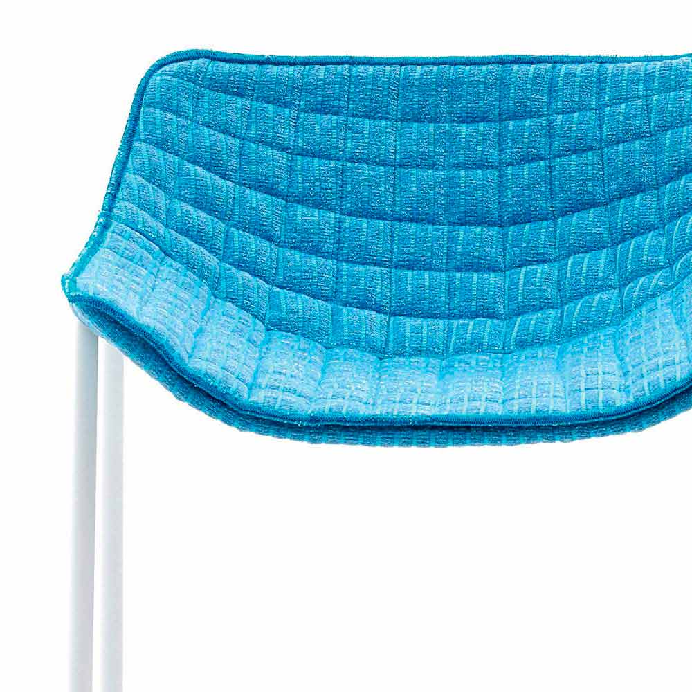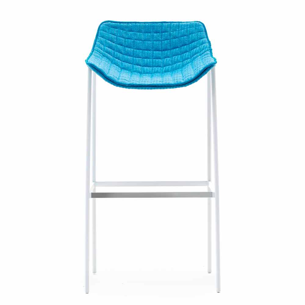 Summer Set è un sgabello da giardino caratterizzato da una struttura portante in acciaio verniciato a polveri bianco e una seduta in tessuto imbottita.