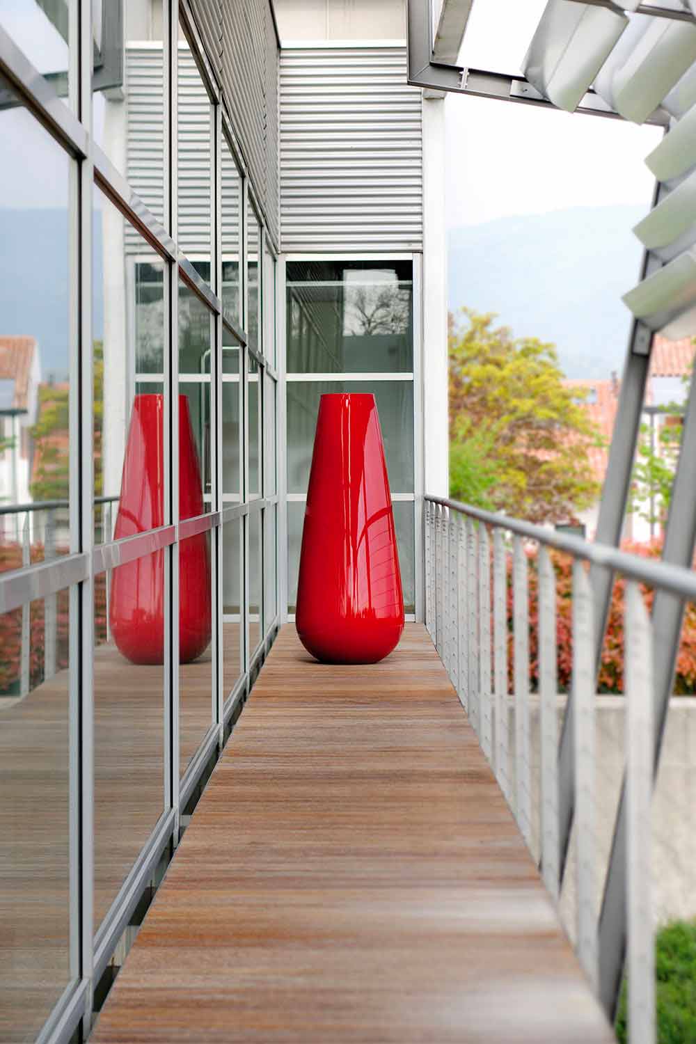 polietilene, è disponibile nella versione opaca caratterizzata da un ottima resistenza agli urti e al calore, nella versione laccata resistente e brillante che permette di creare giochi di luci e riflessi che diventano protagonisti all'interno dell'ambiente o, infine, nella versione metallizzata. Ideale per piante di medie dimensioni con sviluppo verticale.