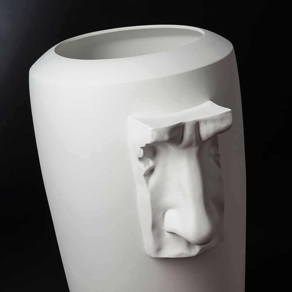 Originale vaso decorativo da interno in ceramica bianca opaca lavorata a mano attraverso una produzione 100% Made in Italy. Un'idea di arredamento totalmente rivoluzionaria che unisce design essenziali ad elementi estrapolati da opere d'arte della cultura italiana per creare un elemento decorativo esclusivo capace di rivoluzionare lo stile di qualsiasi ambiente moderno portando con sè un tocco di originalità e un'estetica estremamente creativa. La lavorazione artigianale ne sottolinea il pregio ed è scandita da precisione, passione e amore per la tradizione. Il risultato è un'idea di arredamento esclusiva ideale i più svariati ambienti, dall'arredamento di casa a quello di hotel, ristoranti, zone contract, spa ma anche come allestimento per eventi e matrimoni.