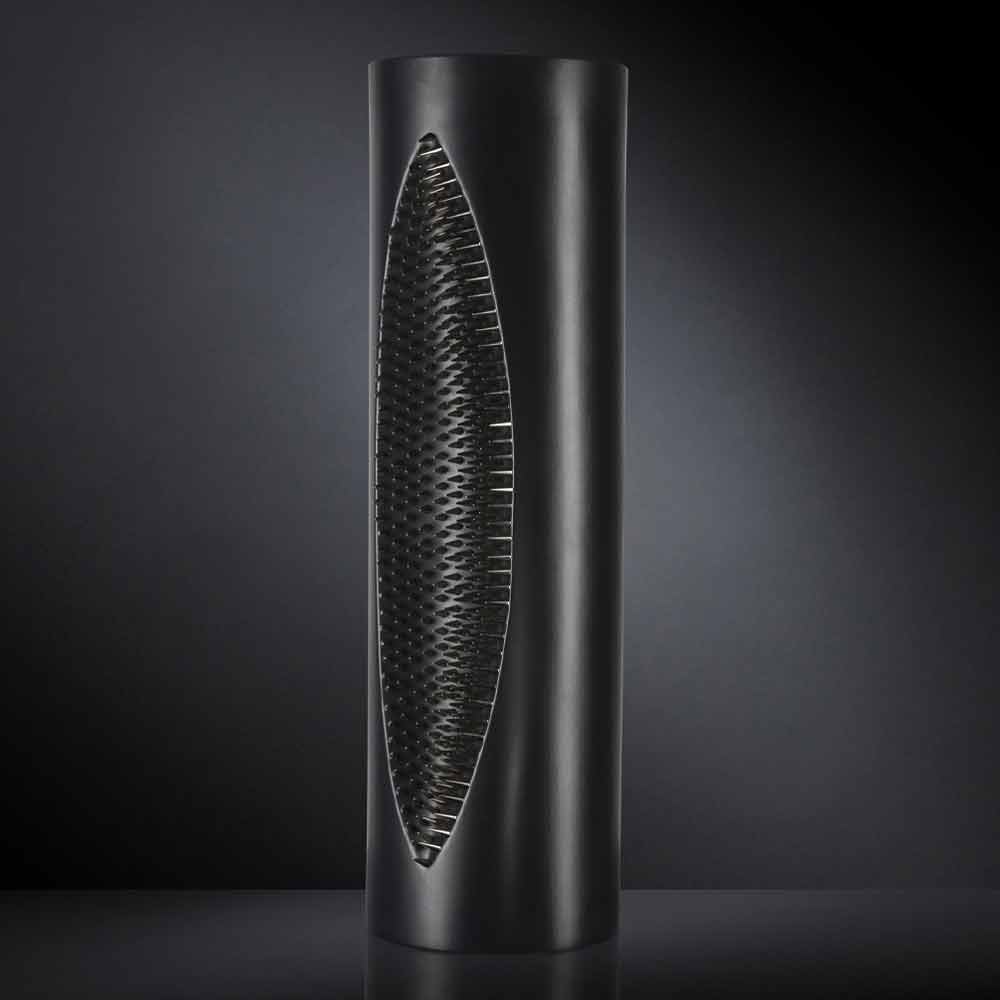 Vaso alto decorativo in ceramica nera opaca lavorata a mano in Italia.