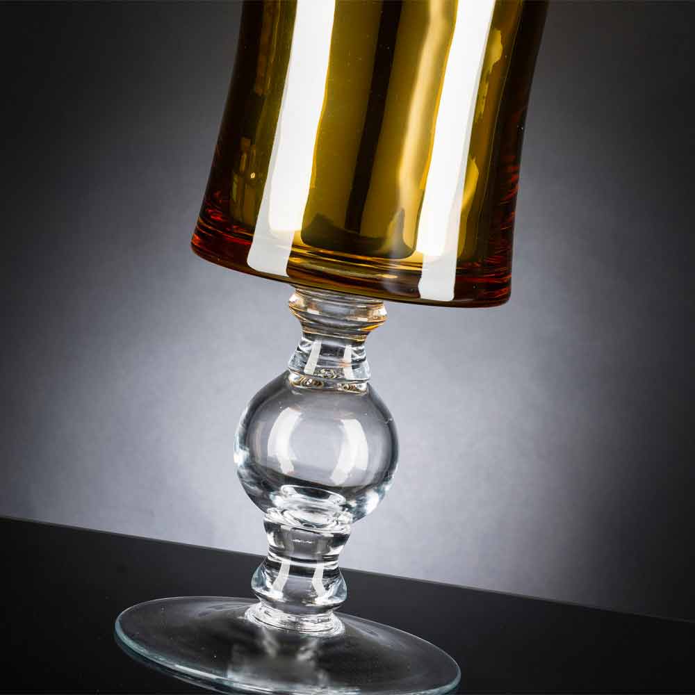 vetro soffiato colorato con basamento trasparente realizzato tramite una
