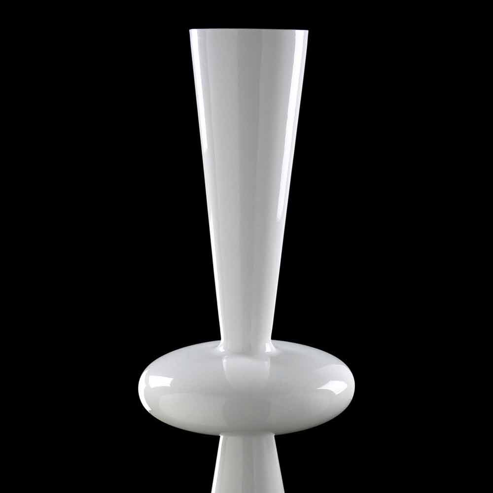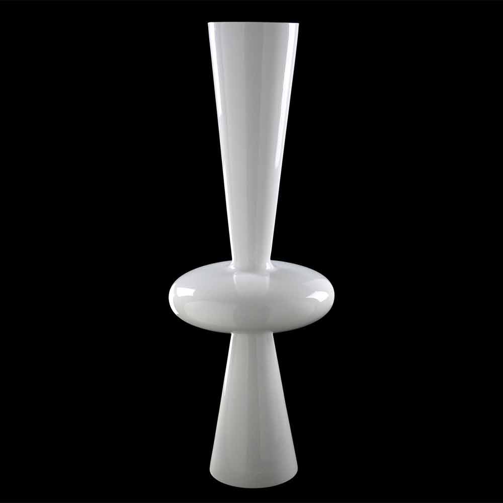 Vaso alto per interni realizzato in ceramica bianca lavorata a mano in Italia. Forme originali e quasi futuristiche scandiscono l'estetica di questo complemento moderno e all'avanguardia che attira ogni attenzione su di sè grazie ad una forte personalità creativa e a un design unico ideale per chi ama personalizzare i proprio spazi in maniera esclusiva e ricercata. L'uso della ceramica e la lavorazione artigianale ne sottolineano il pregio e il valore offrendo un elemento decorativo di qualità. Uno stile ideale per i più svariati ambienti, dall'arredamento di casa a quello di hotel, ristoranti, zone contract, spa ma anche come allestimento per eventi e matrimoni.