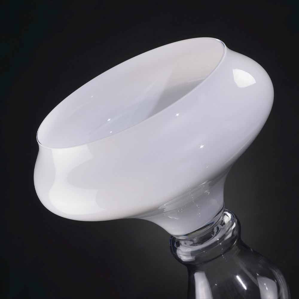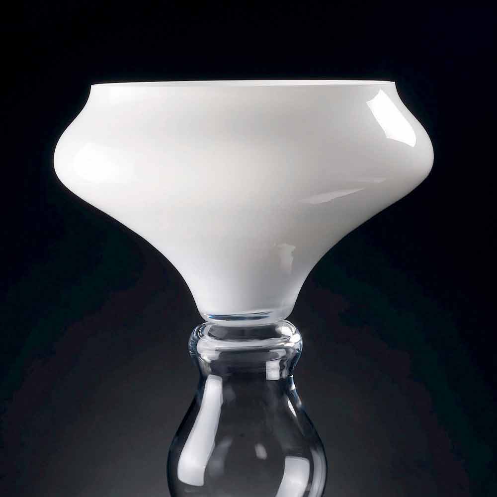 Vaso elegante per interni in vetro bianco e trasparente realizzato in Italia.